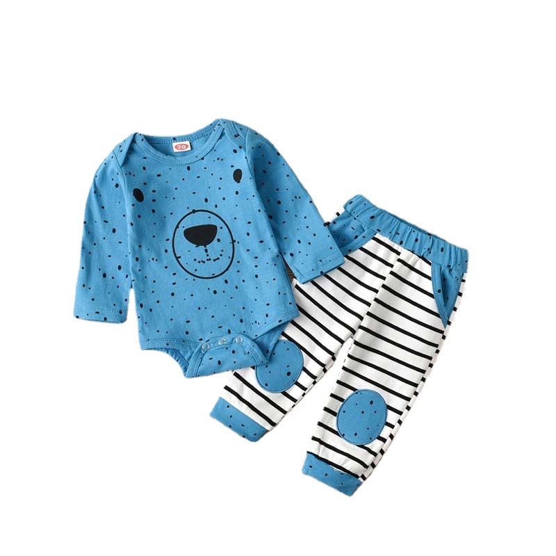 long sleeve hooded top adorned with cute polka dots and a pair of matching striped trousers. Made from high-quality, soft fabric, this set