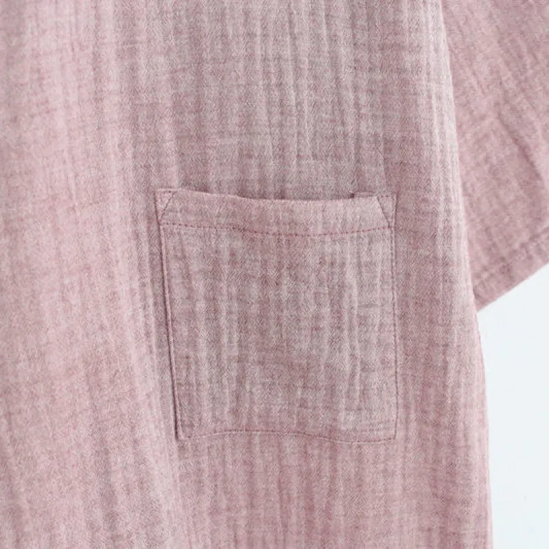 Crafted from lightweight gauze fabric, the nightgown offers a soft, breathable, and slightly textured feel against the skin. This delicate material is ideal for warmer weather, providing just the right amount of coverage without feeling heavy. The traditional kimono design adds a touch of timeless elegance, while the steamed thin fabric enhances its lightweight and airy nature, making it perfect for a restful night or a cozy day at home.