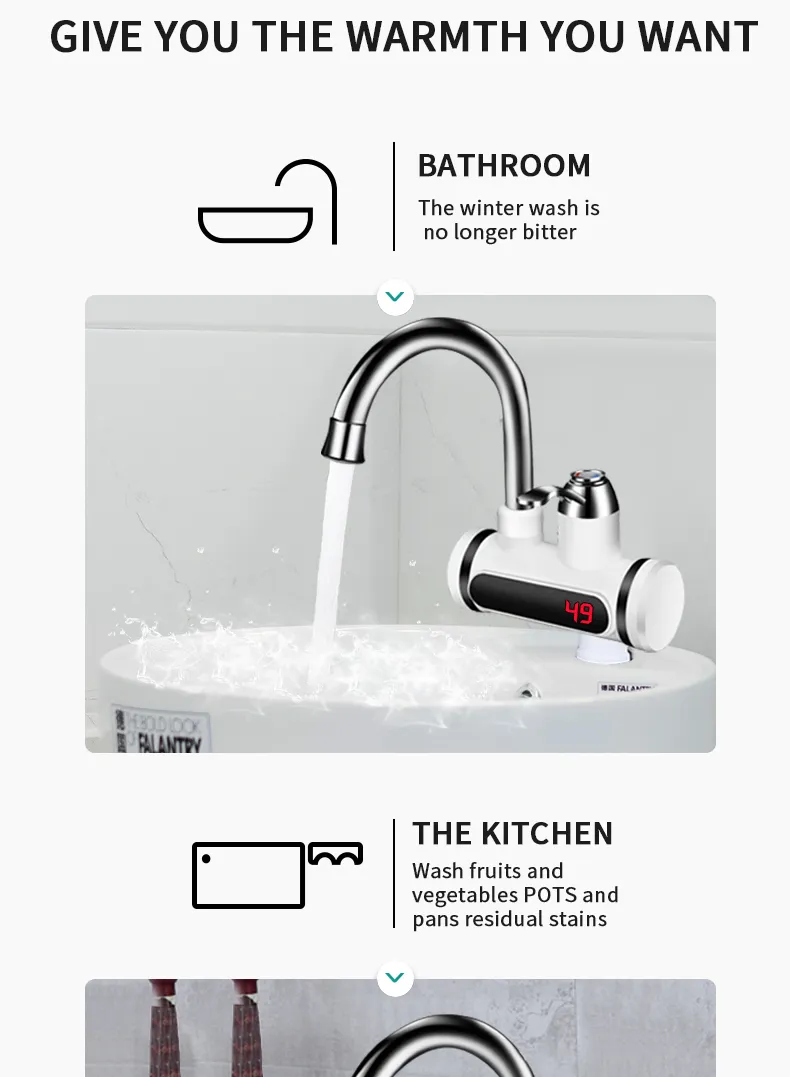Upgrade your kitchen experience with the Kitchen Electric Water Tap Water Heater featuring a convenient temperature display. This innovative appliance provides instant hot water for all your cooking, cleaning, and beverage needs, making it an essential addition to any modern kitchen.