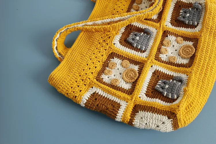 Kitten Handmade Wool Crocheted Square Shoulder Bag