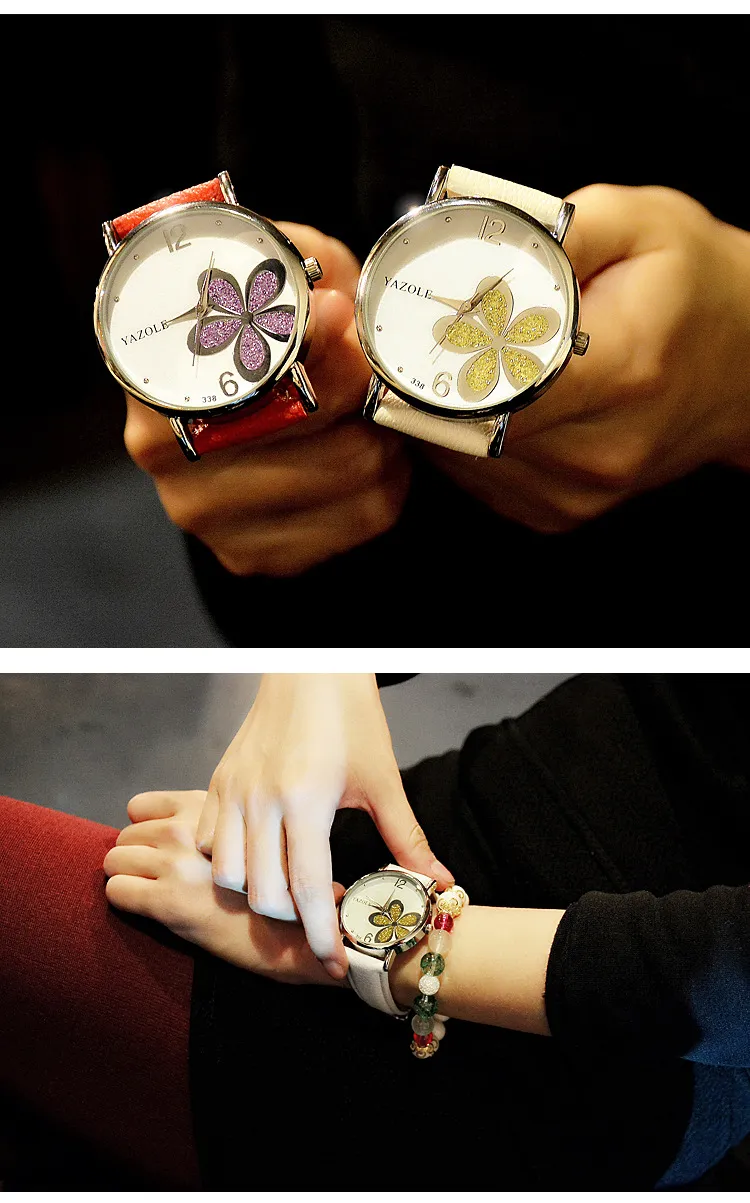 [Watch Features]: Casual tide men and women couple watches, exquisite and elegant five-leaf flowers. The soft strap has a good gloss and a