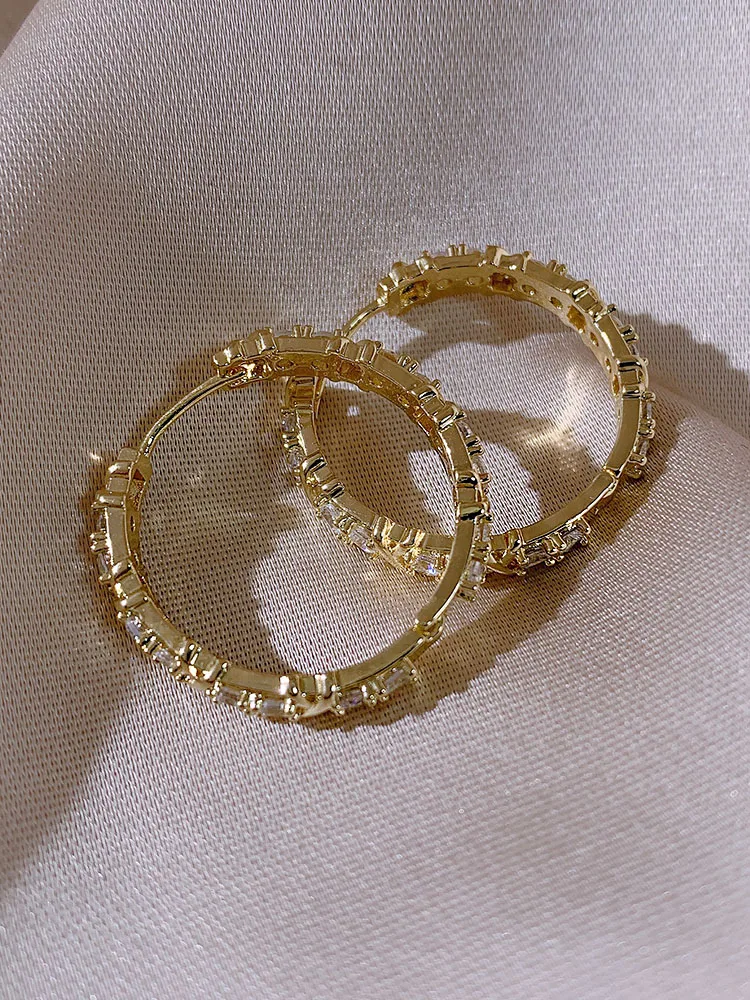 Korean Fashion Simple Zircon X Metal Hoop Earrings