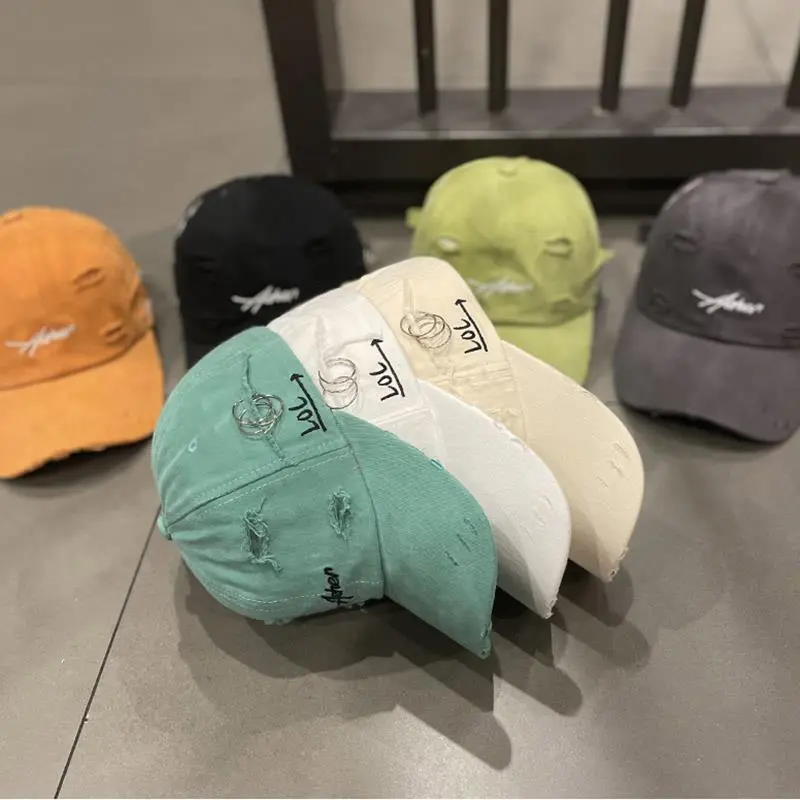 Korean Ins Retro Tattered Jeans Soft Peaked Cap Women