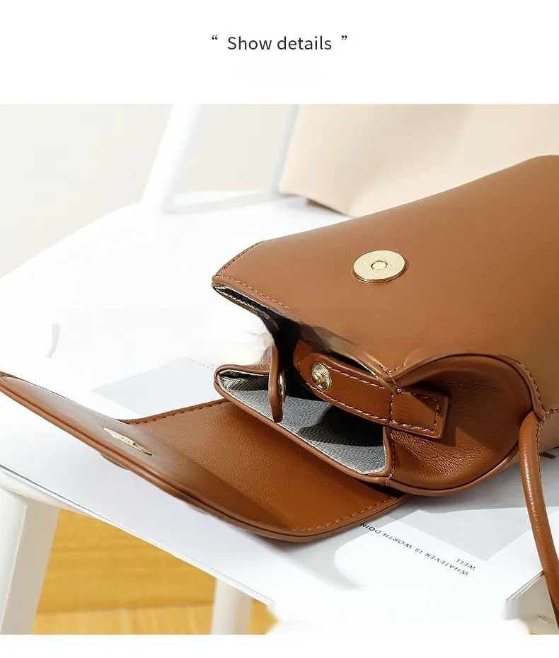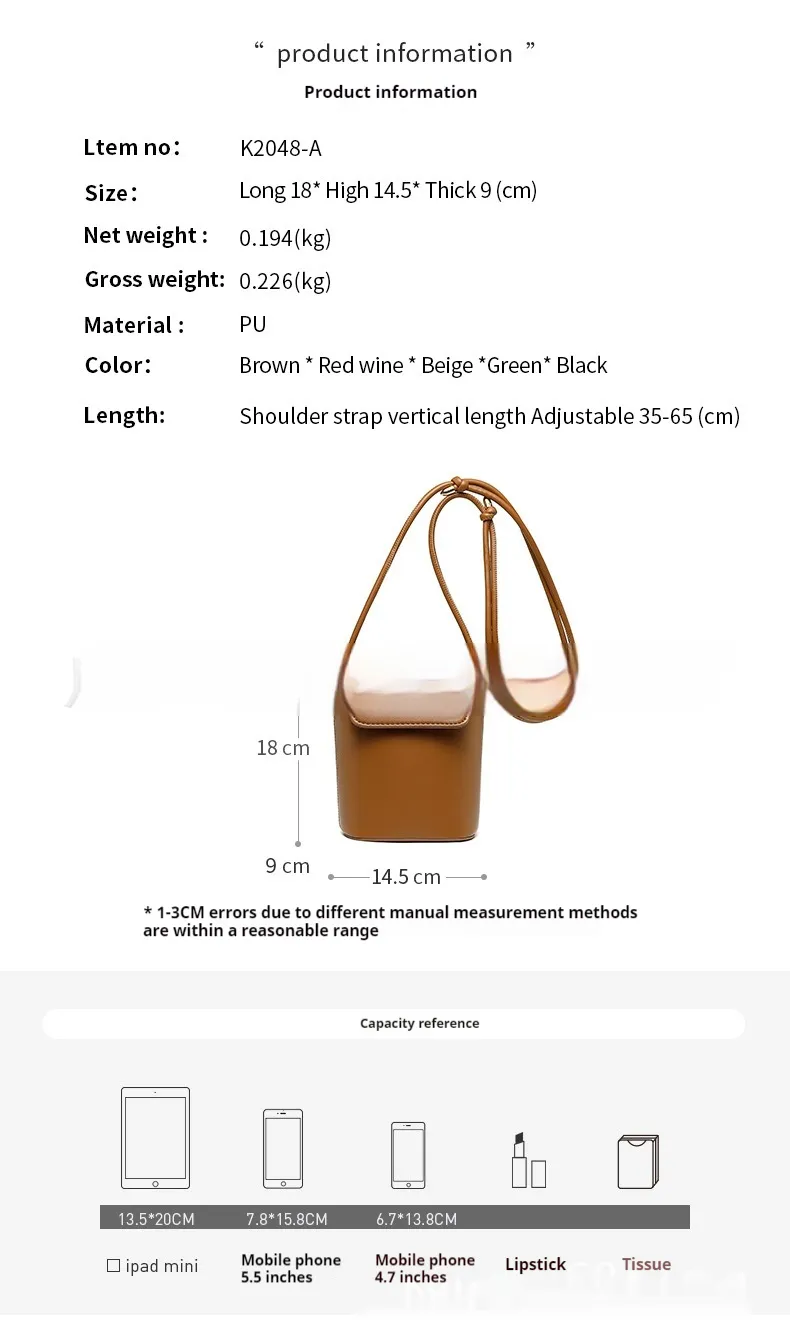 Korean PU Mobile Phone Bag Retro Women's Bucket Bag