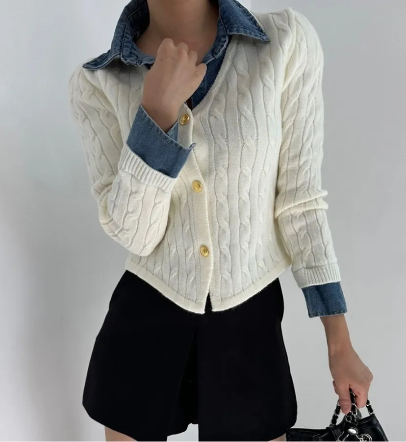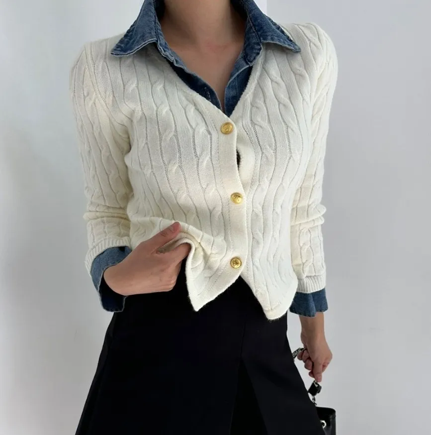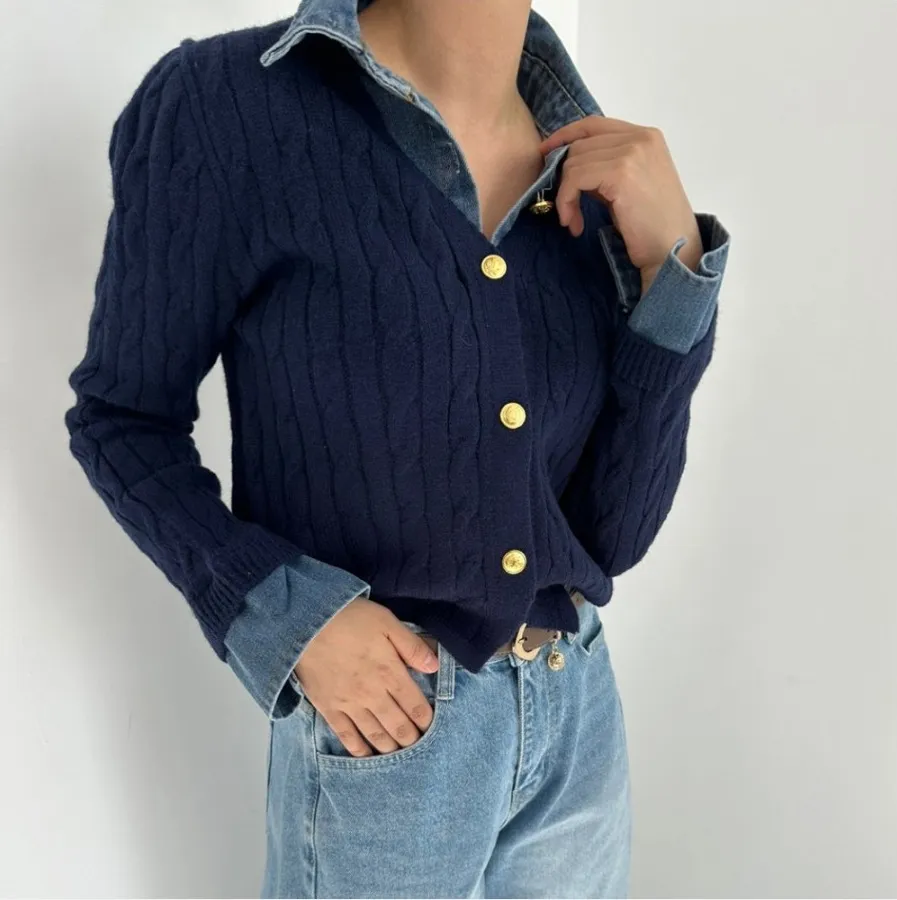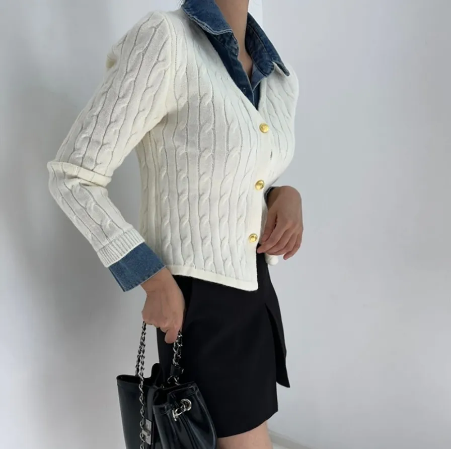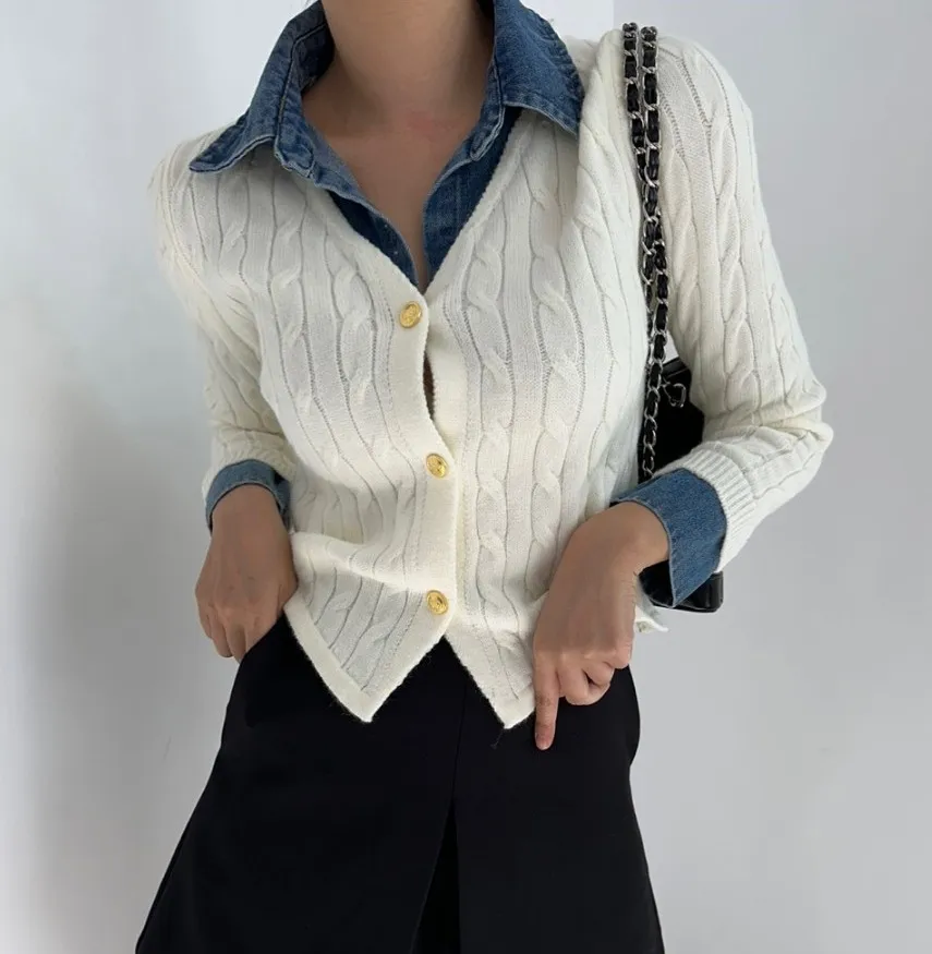 While the Korean Style Contrast Color Knitwear Denim Stitching Long Sleeve Sweater is perfect for New Zealand’s cooler months, it’s versatile enough to be worn year-round. During the transitional weather of autumn and spring, this sweater makes the ideal layering piece, and in winter, it’s a cozy option to wear under heavier coats. The breathable fabric ensures that it’s comfortable in varying climates, making it a must-have for any season.