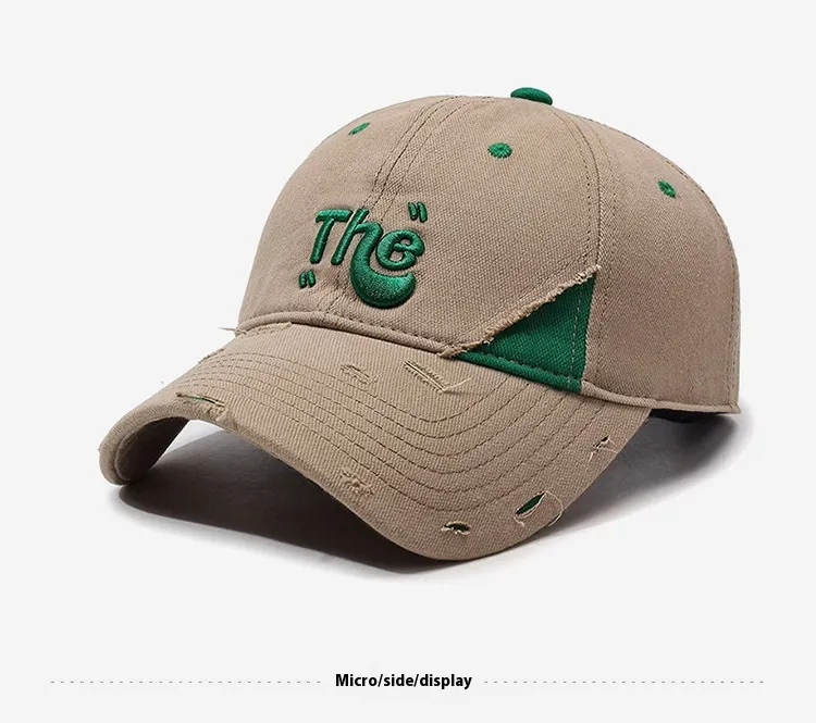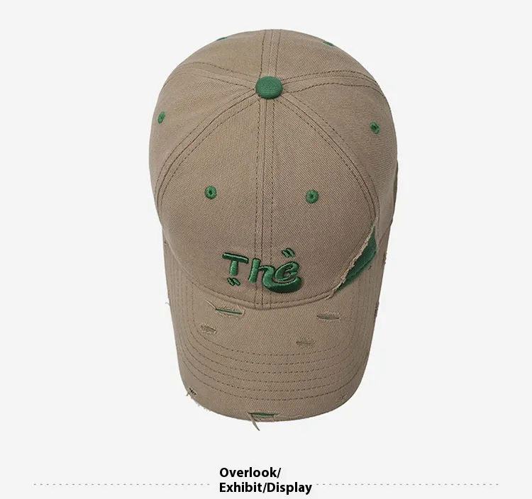 Product Description: Korean Style Ripped Special Letter Embroidered Baseball Cap Big Brim