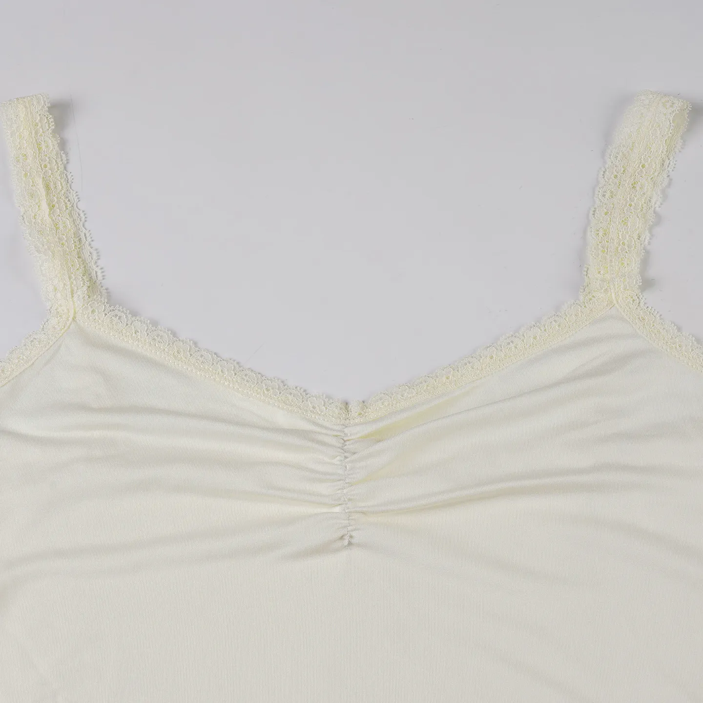 Lace Stitching Pleated Spaghetti Strap Tank Top: Elegant, Feminine, and Effortlessly Chic
