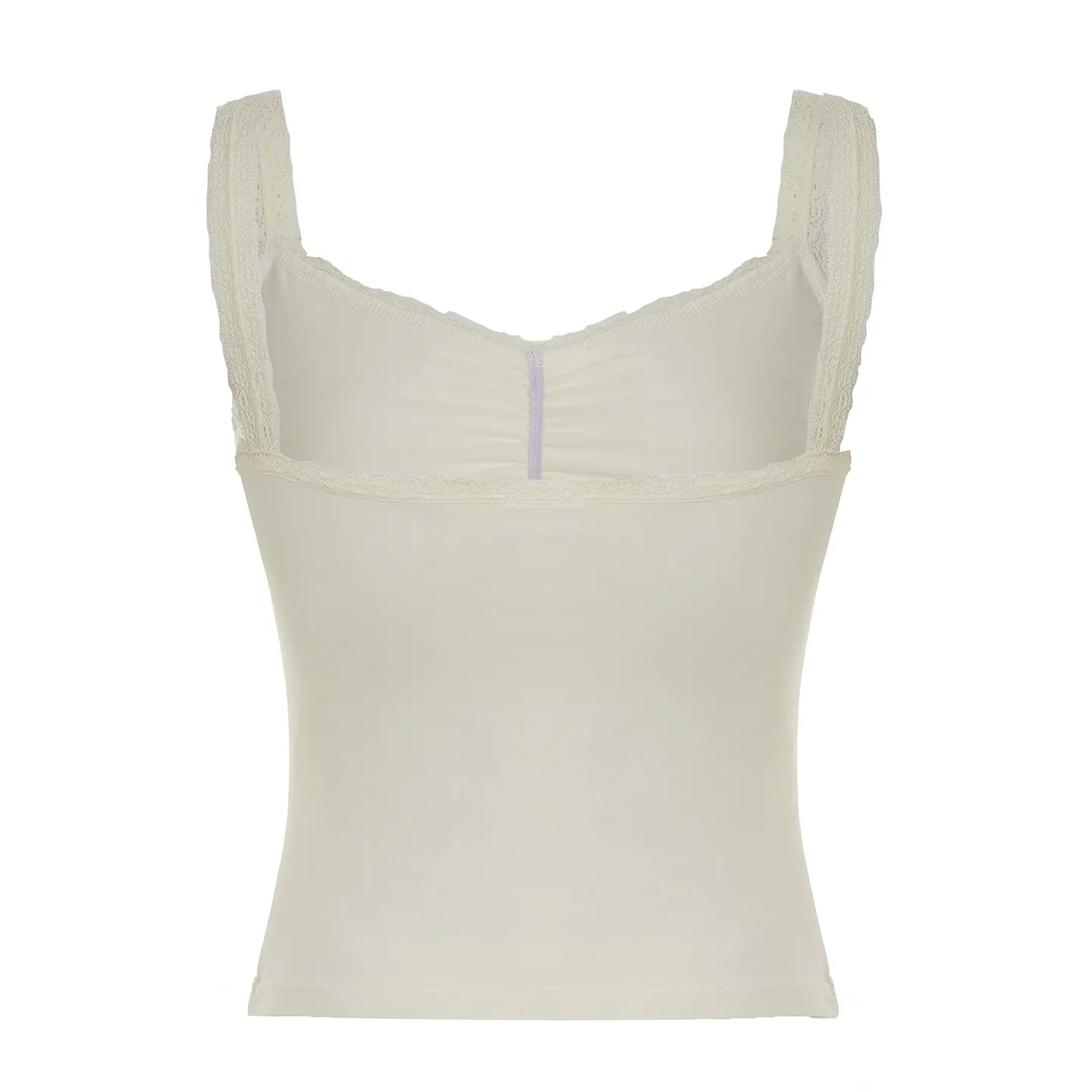 Delicate Lace Stitching: The intricate lace stitching adds a touch of elegance to the simple tank design, giving it a