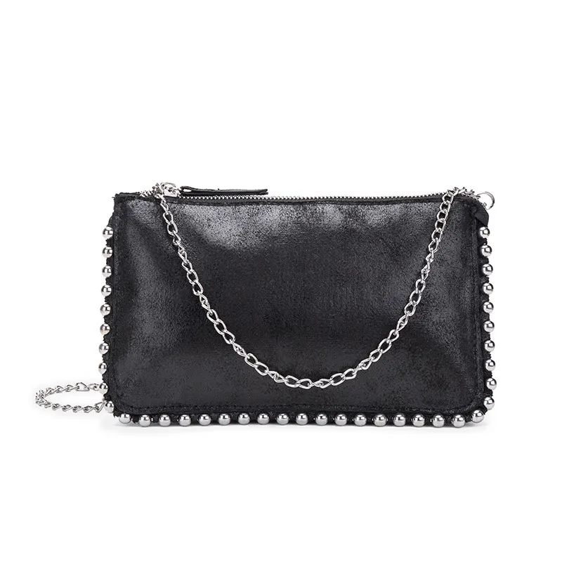 Ladies Bag Beaded Black Small Square Bag Compartment Wallet