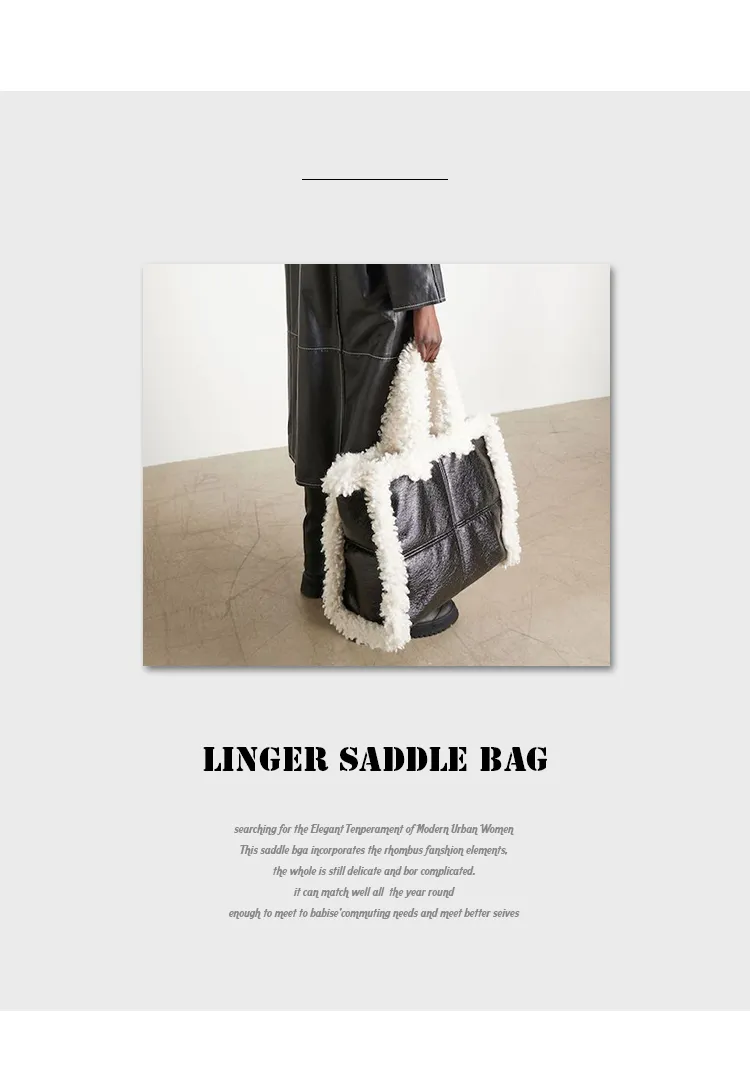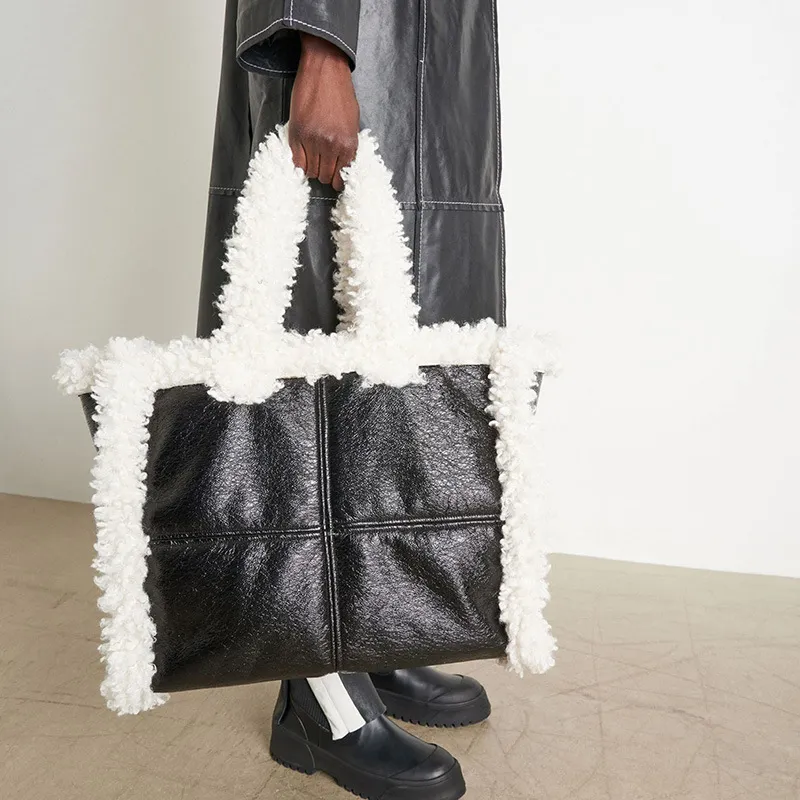 Lamb Wool Plaid Stitching Woolen Tote Bag