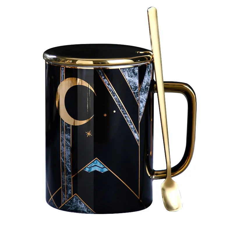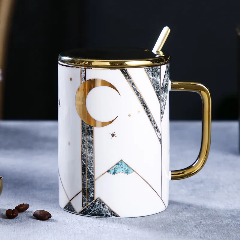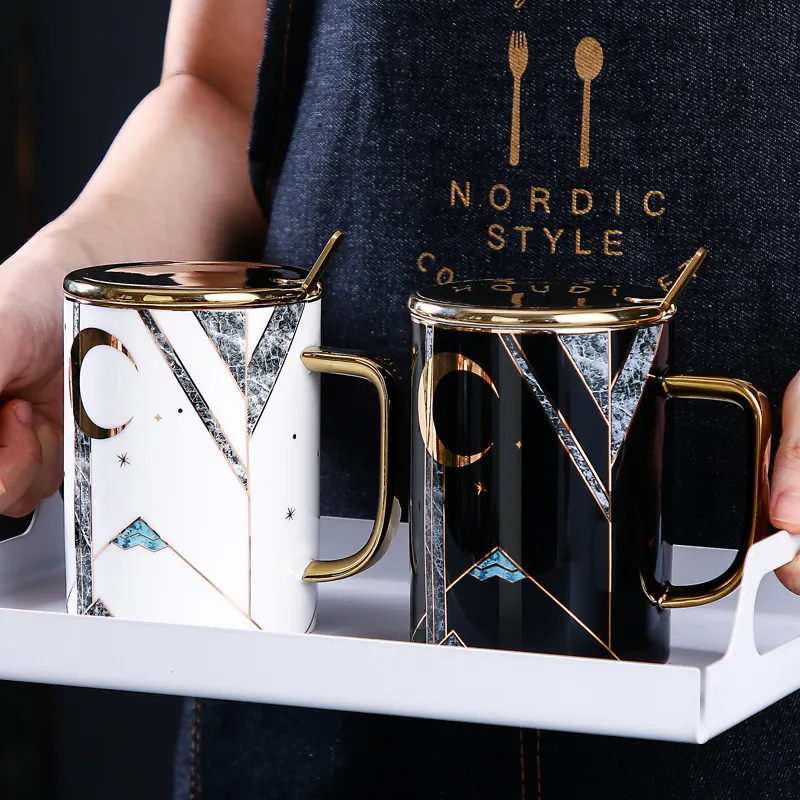 Large Capacity Ceramic Cup With Lid Cpoon Coffee Cup Couple Cup