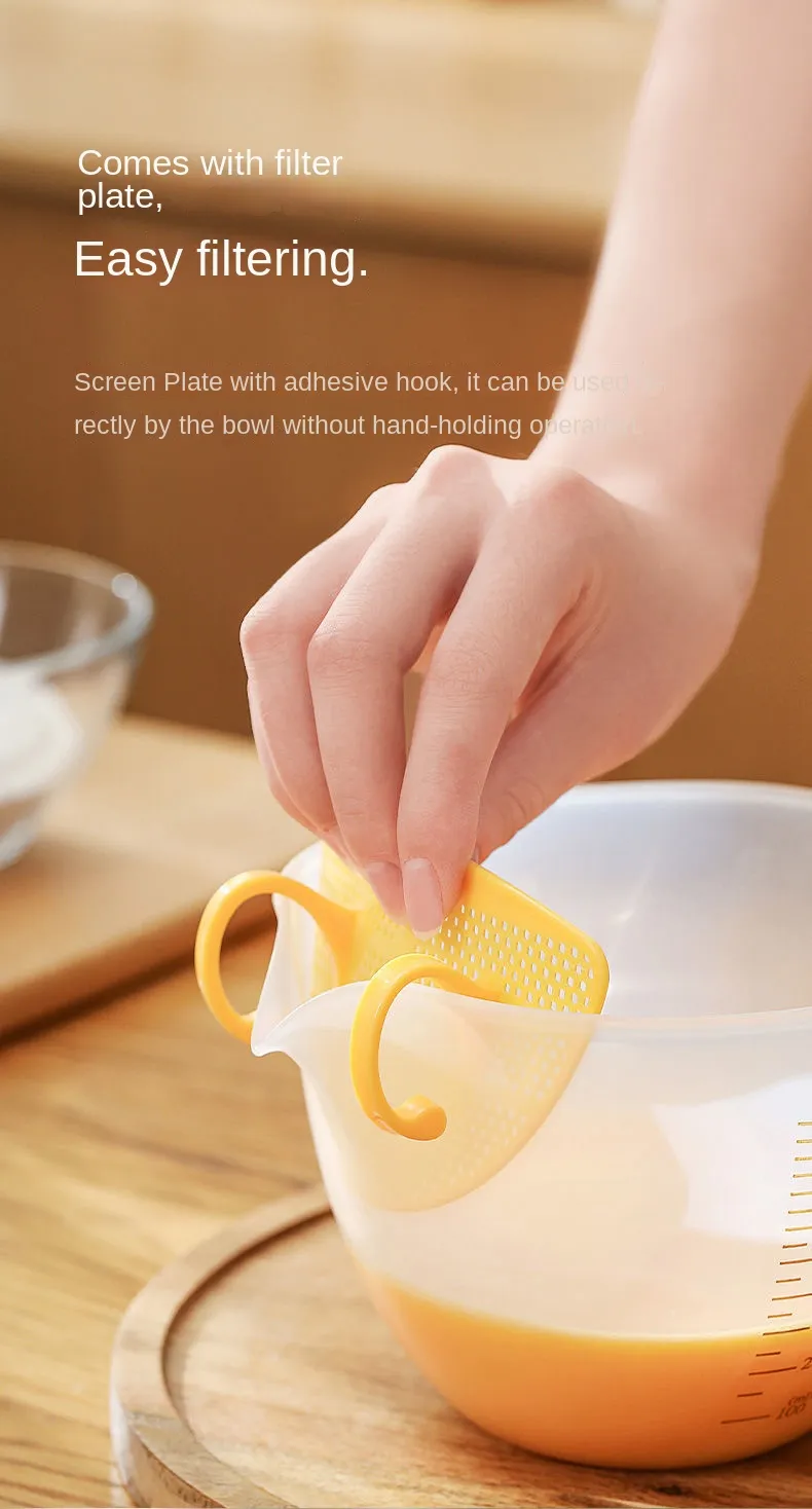 Upgrade your culinary tools with the Large Capacity Graduated Measuring Cup, designed for egg beating, liquid filtering, and mixing. This multi-functional kitchen essential is perfect for baking, cooking, and preparing a variety of dishes. Whether you’re whisking eggs, filtering liquids, or mixing batters, this durable and practical bowl ensures precision and convenience in your kitchen.