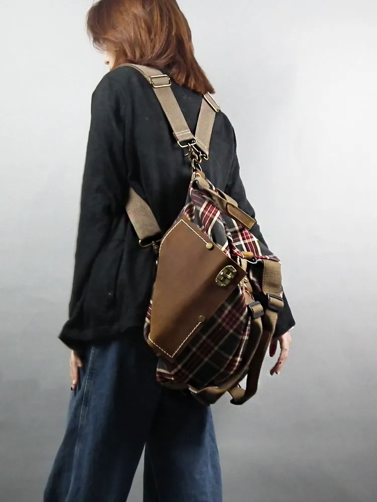 The bold red checked pattern sets this backpack apart, making it a stylish accessory that stands out in a crowd.