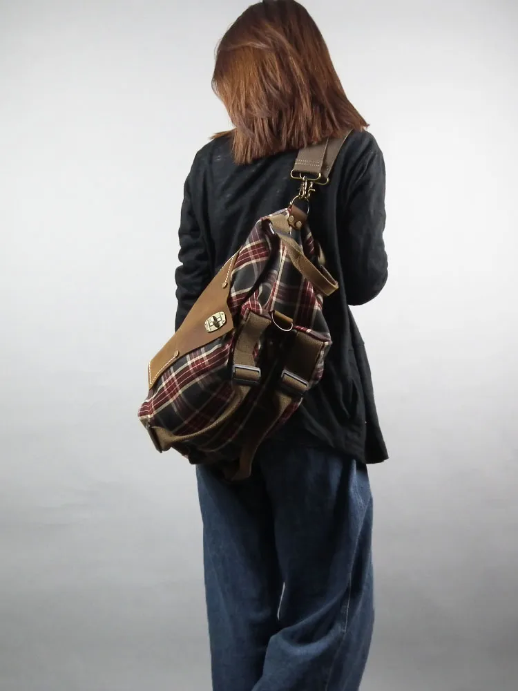 Large Capacity Red Checked Backpack