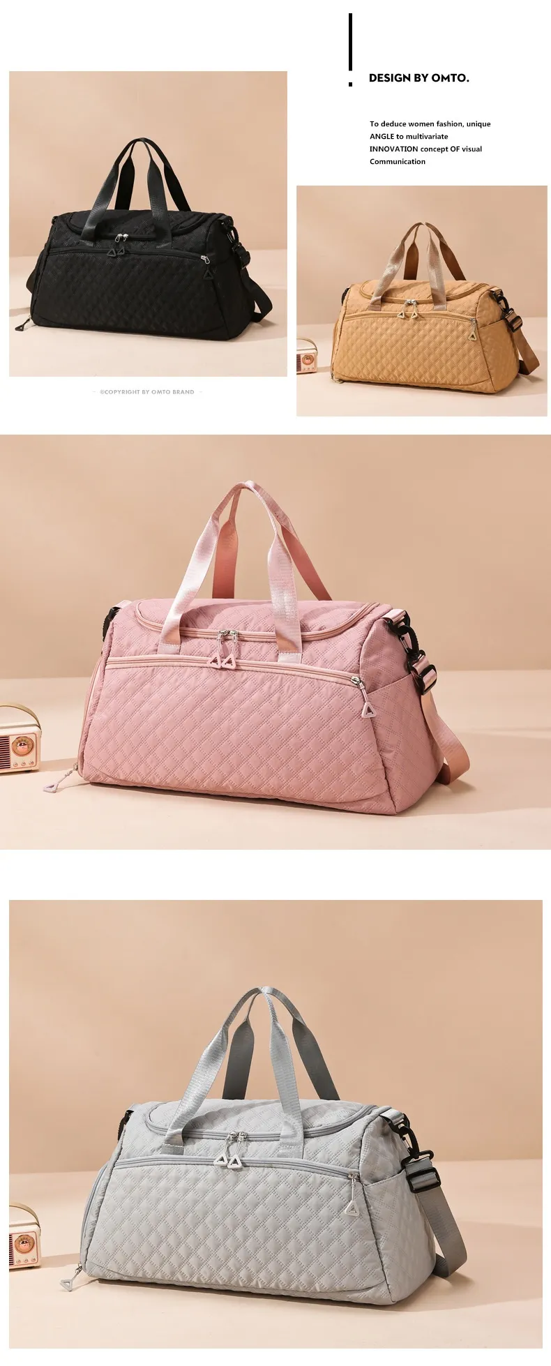 Color: gray [large capacity Diamond travel bag], pink [large capacity Diamond travel bag], beige [large capacity Diamond travel bag], Black