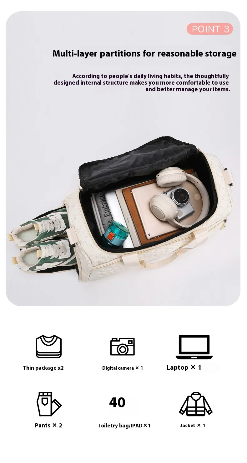 - The rhombus design adds a touch of sophistication to this otherwise functional travel bag. Its modern look complements various styles, whether you're dressing for a formal business trip or a casual vacation.