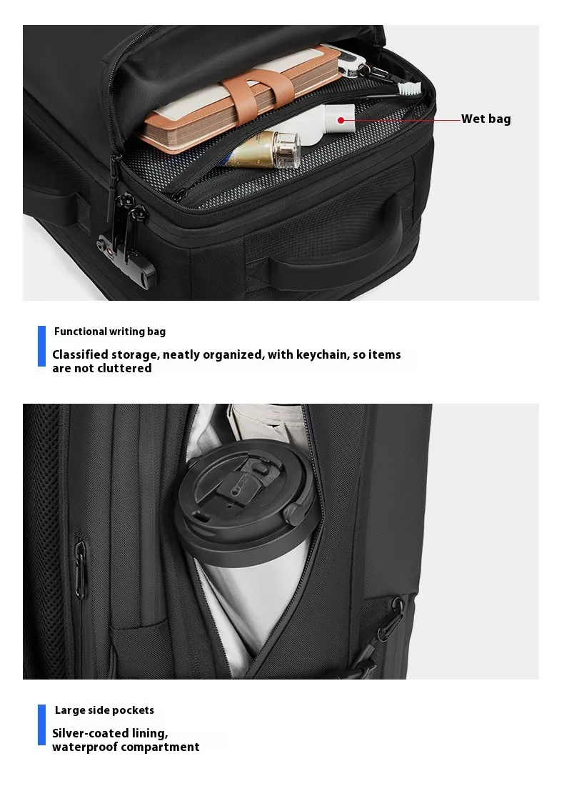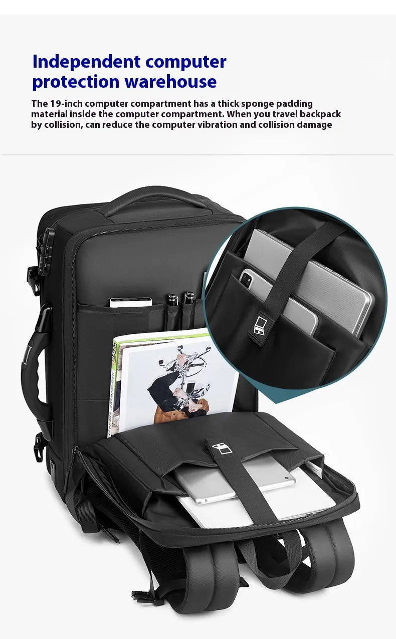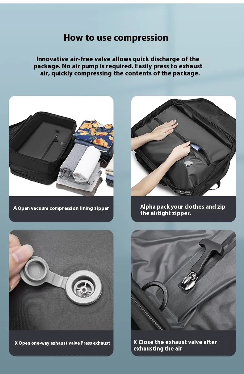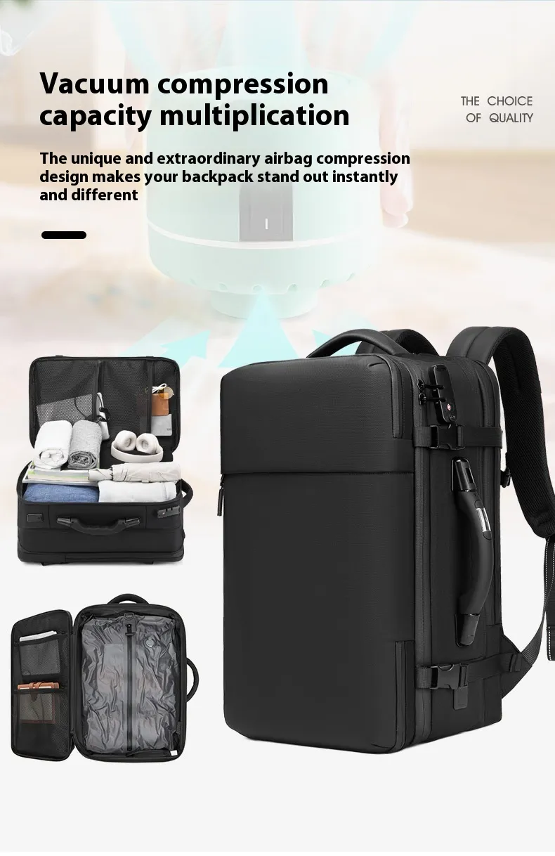 Introducing the Large Capacity Vacuum Compression Backpack, designed for the modern traveler who values functionality, security, and