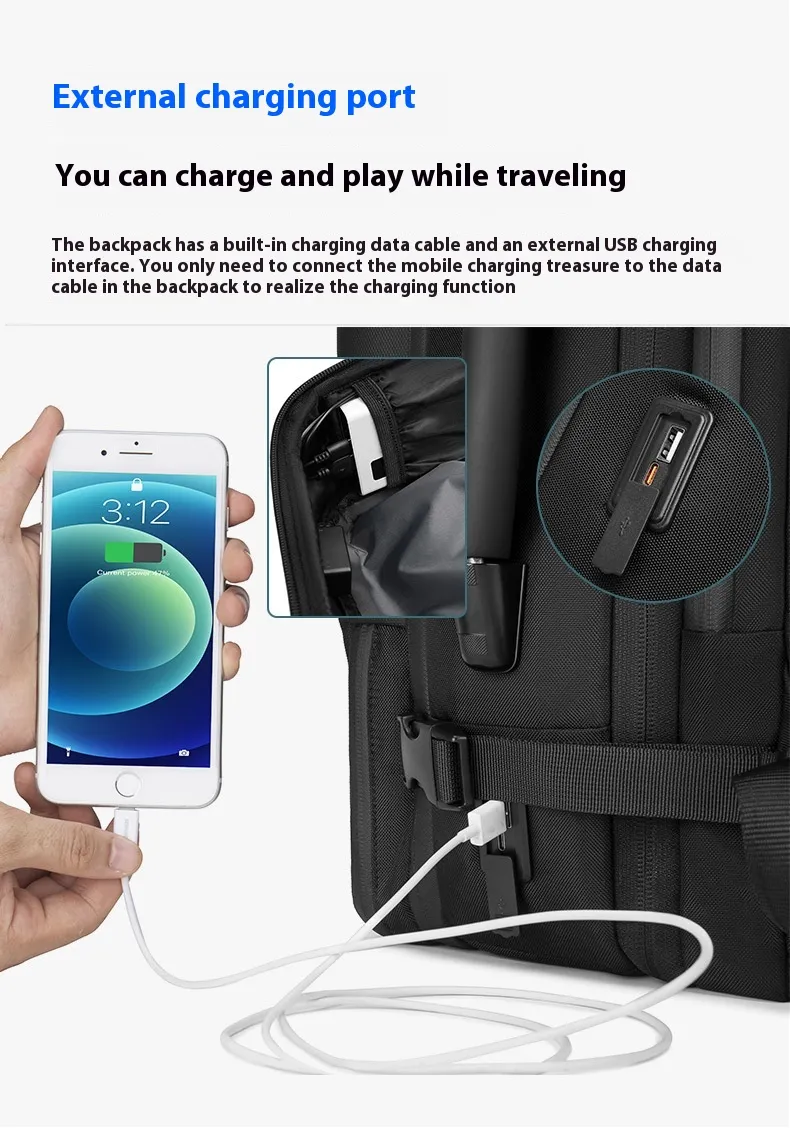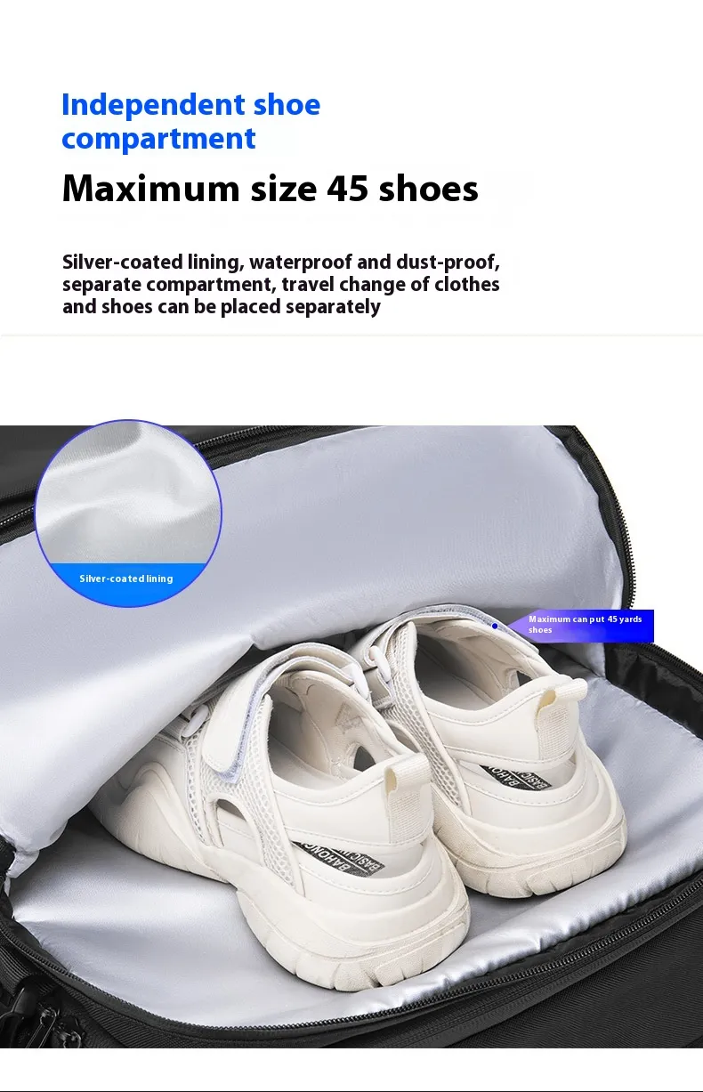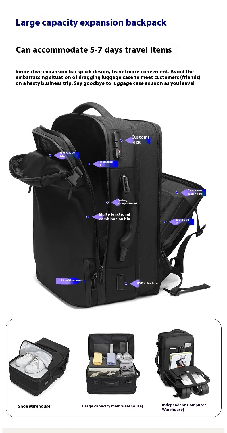 Introducing the Large Capacity Vacuum Compression Backpack, designed for the modern traveler who values functionality, security, and