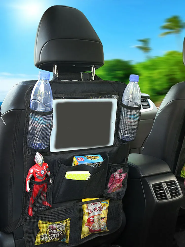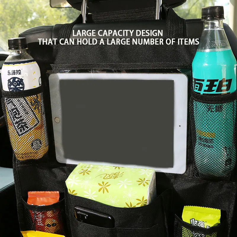 This multifunctional storage bag is designed to be mounted on the back of your car seat, providing easy access to stored items while keeping them organized and secure. The large capacity design ensures you can store a variety of items, making it ideal for long trips, daily commutes, or family outings. The bag features multiple pockets and compartments, including zippered sections, mesh pockets, and dedicated spaces for specific items like tablets, bottles, and documents. The adjustable straps ensure a secure fit on most car seats, and the portable design allows for easy removal and transport.