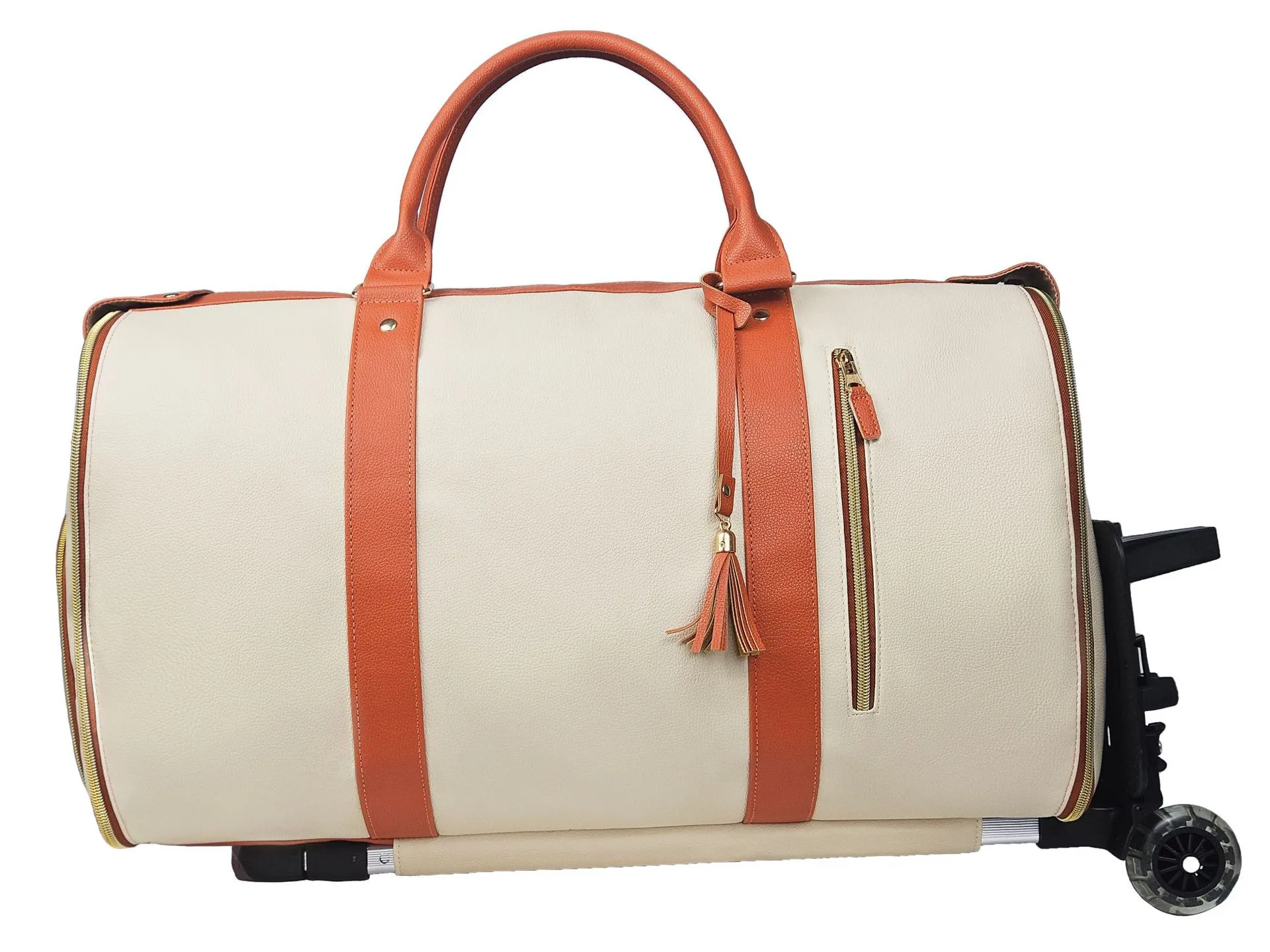 - The travel bag is made from premium, water-resistant fabric or durable leather (depending on style), ensuring it can withstand the rigors of travel and last for many trips.