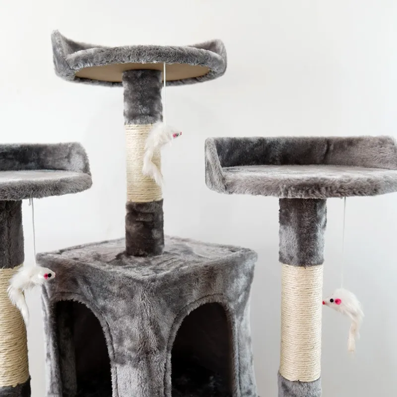 Sisal-Wrapped Scratching Posts: Equipped with sisal-wrapped columns, this cat tree is perfect for cats who love to scratch.