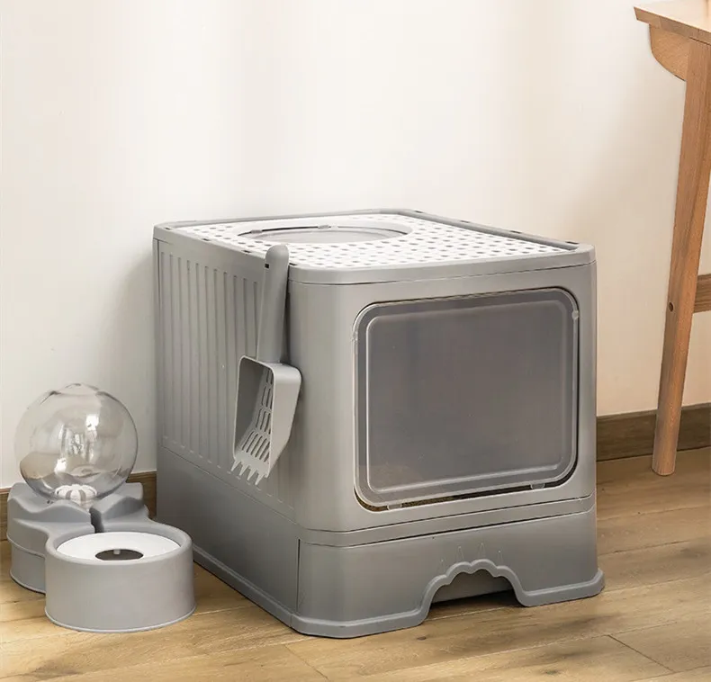 The Large Double Door Drawer Foldable Cat Litter Basin offers a practical, hygienic, and space-saving solution for managing