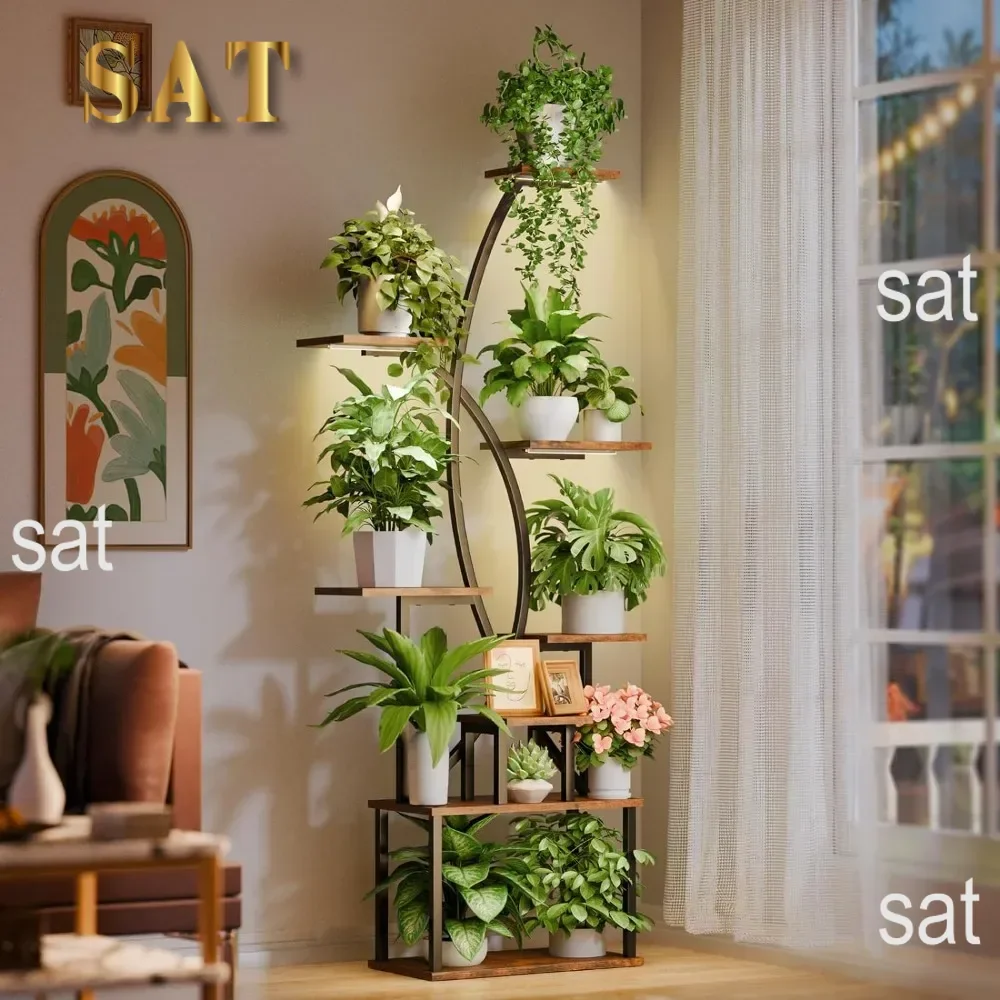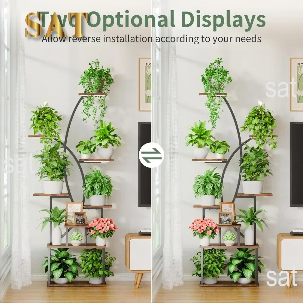 The stand includes several shelves at different levels, allowing you to display a range of plants in a visually organized way. This multi-tier design makes it easy to arrange plants of varying heights and sizes, creating an attractive, layered look.