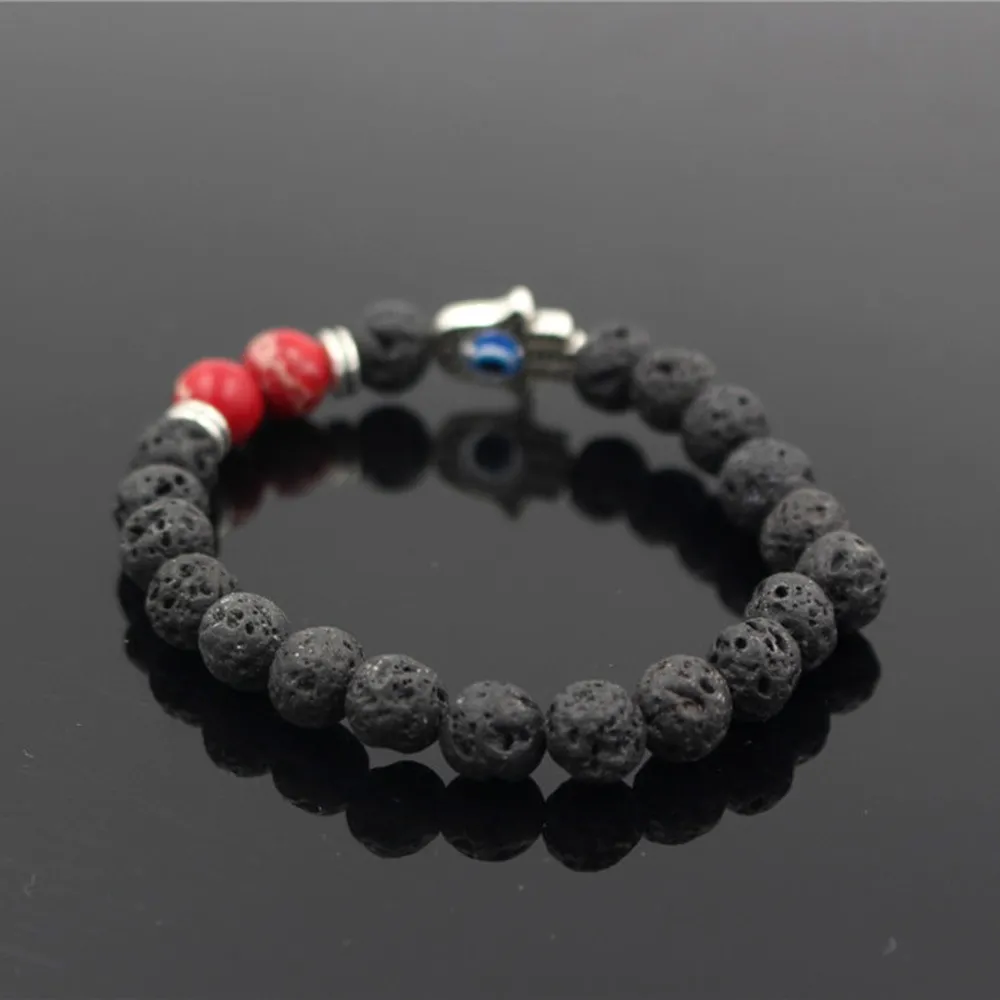 Lava Volcanic Stone Red Pine Beads Bracelet Hand of Fatima: A Symbol of Protection and Strength