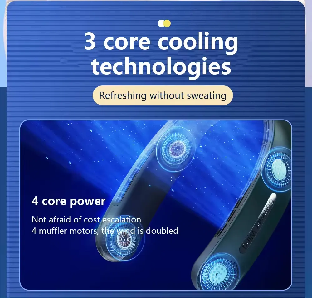 Ideal for outdoor activities, sports events, and warm-weather travel, this leafless neck fan combines functionality with modern design. Stay