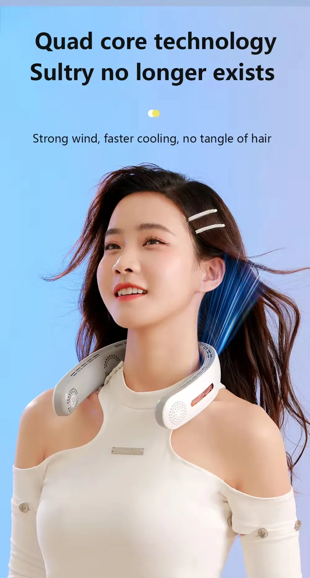and enjoy the cool wind brought by the neck fan.