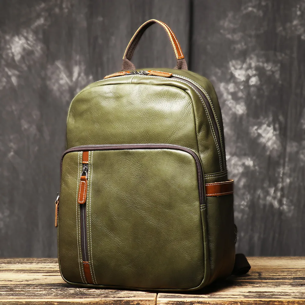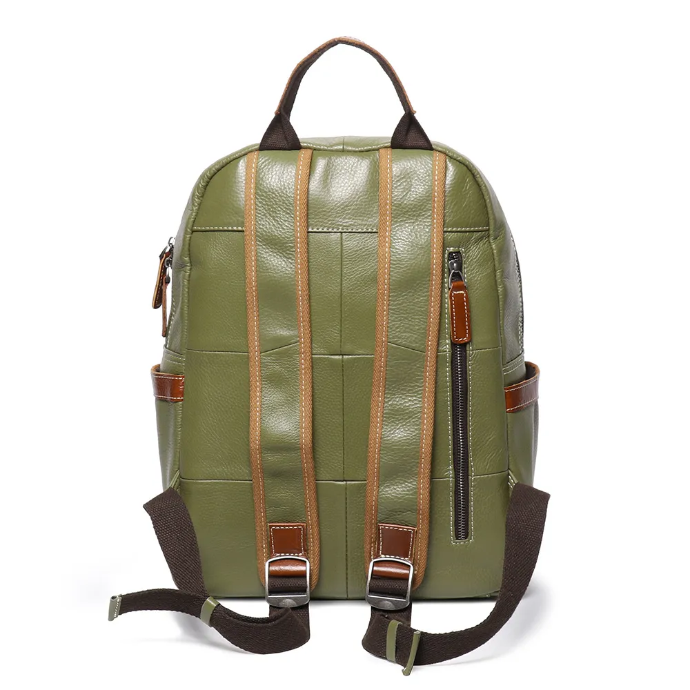 premium cowhide leather, this backpack offers a luxurious feel while ensuring durability for everyday use. Its unique contrast color design