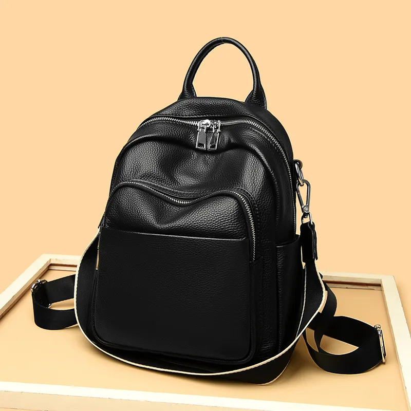 leather, this backpack boasts a minimalist design that effortlessly complements any outfit. Designed for women who value quality and