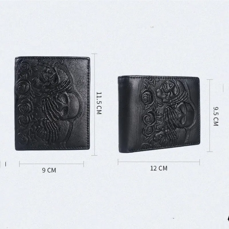 Durable Genuine Leather: Made from premium genuine leather, the Leather Skull Wallet is built to last.