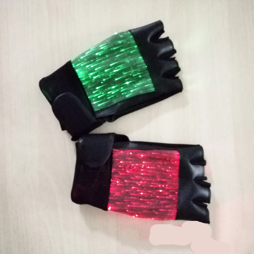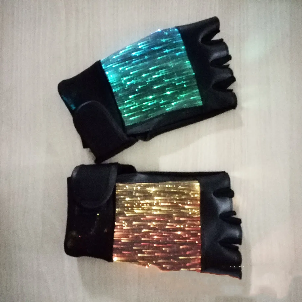 LED Fiber Cloth Luminous Gloves, Holiday Entertainment Performance Props, Adult Colorful Color-Changing Half-Finger Gloves
