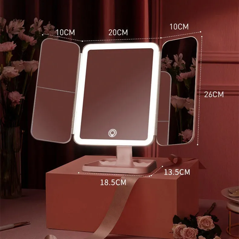 LED Folding Light Compensation Dressing Mirror With Lamp Table