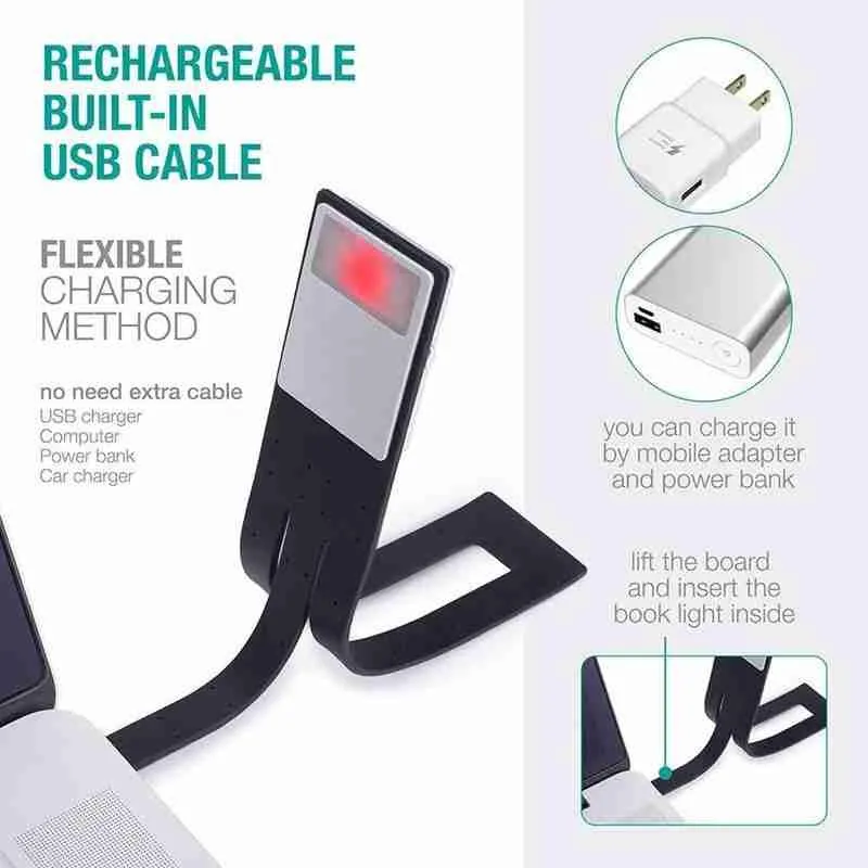 USB Rechargeable: Rechargeable via USB for a more sustainable and cost-effective reading light solution.