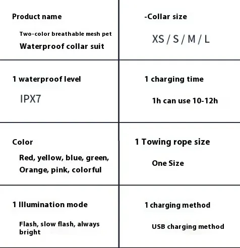 LED Luminous Nylon Mesh Pet Collar Type-c Charging Port Waterproof Dog