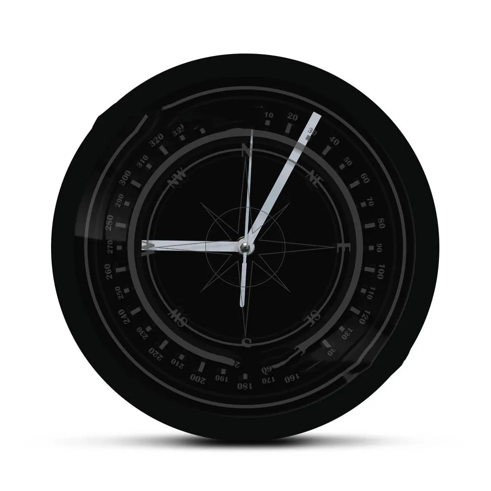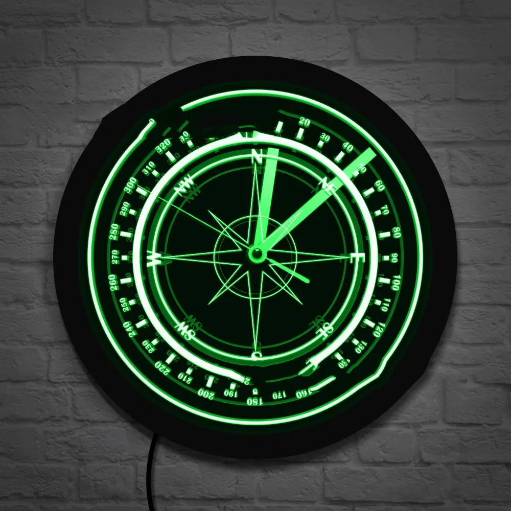 LED Luminous Wall Clock Black Wall Clock Nautical Compass Backlit Rose Compass Home Decoration Clock Wall Clock