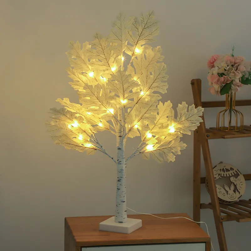 Beautiful LED Tree Light with Maple Leaves and Birch Trunk