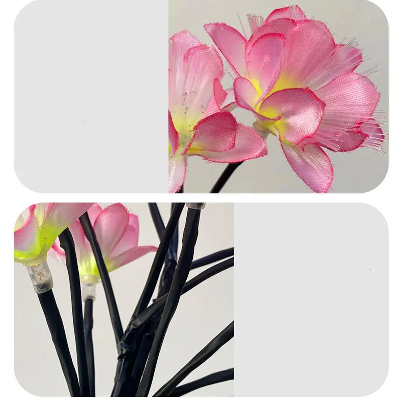 The lamp features a beautifully crafted simulated camellia flower design that closely resembles the natural beauty of real camellias. This elegant addition enhances the aesthetics of your garden during both day and night.