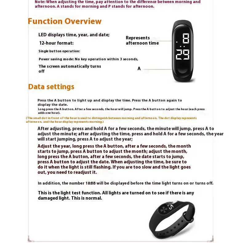 LED Display: Equipped with an easy-to-read LED screen, the watch provides bright, clear numbers and time, making it simple