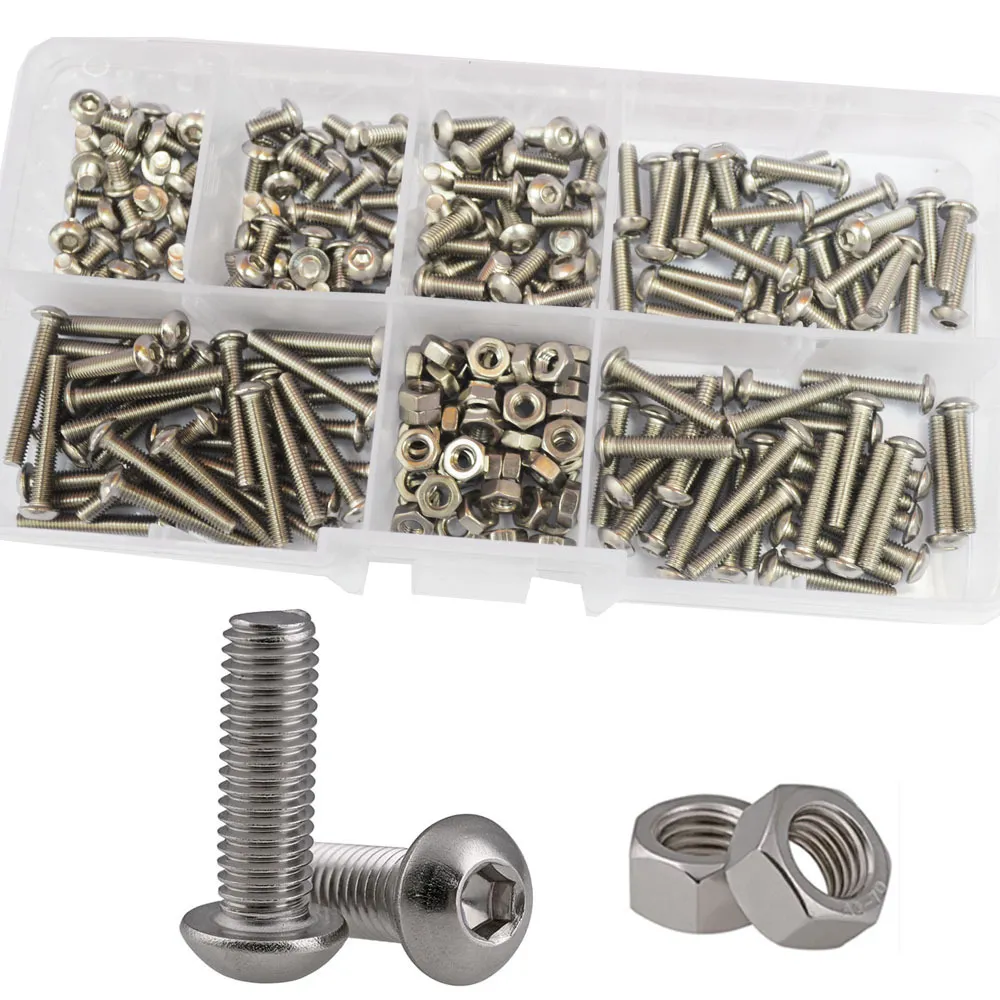 Specifications: M3 round head hexagon socket screw set with 230pcs nuts