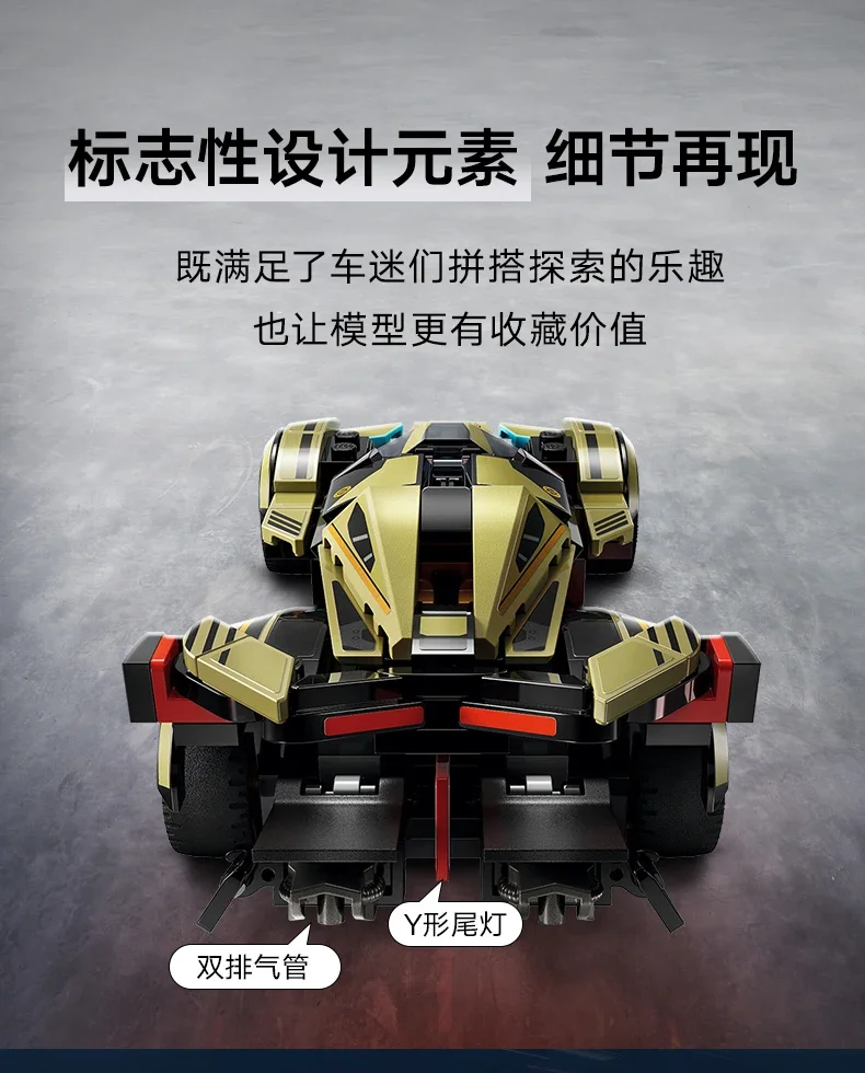 This LEGO set meticulously captures the sleek, dynamic design of the Lamborghini V12, including its wide body, sharp lines, and low-profile look. From the aggressive front grille to the stylish rear, every detail of this sports car has been faithfully recreated.
