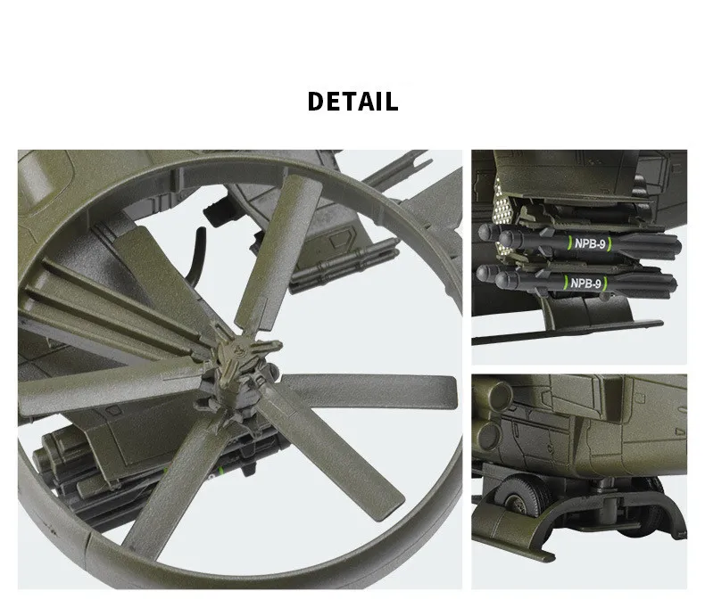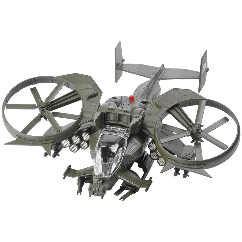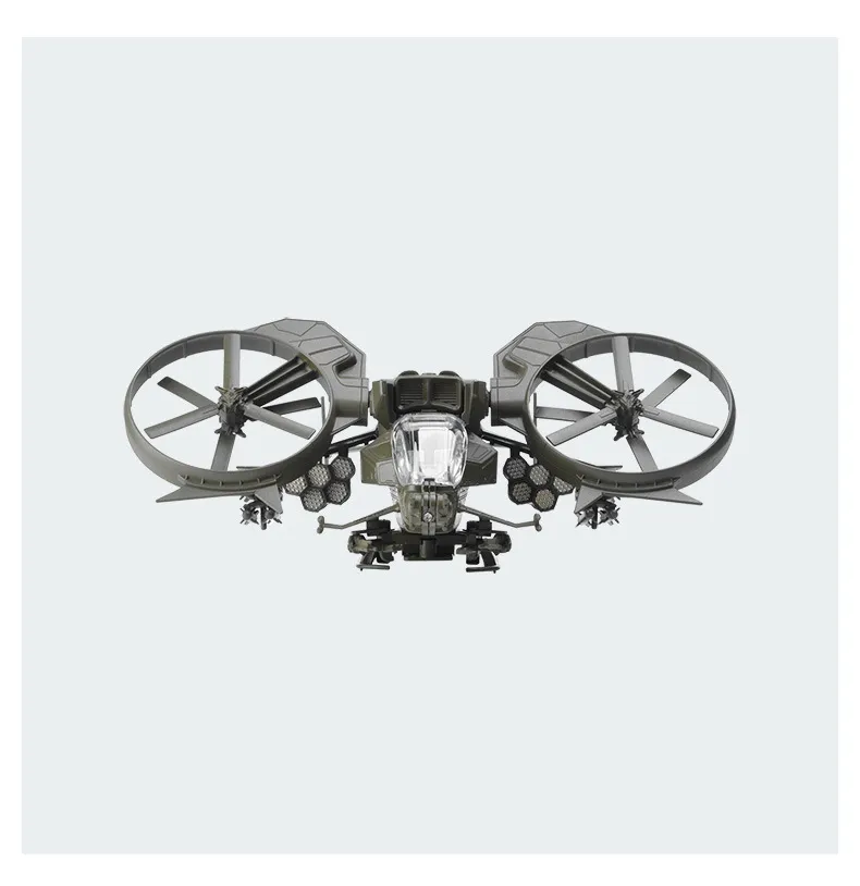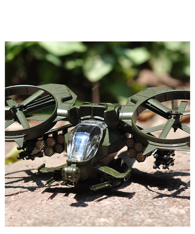 reduction. The main body of the fuselage is made of zinc alloy, the missiles on both sides can be pressed and launched, and the rotor