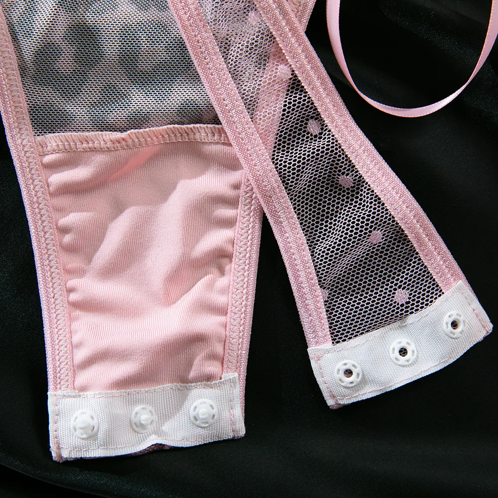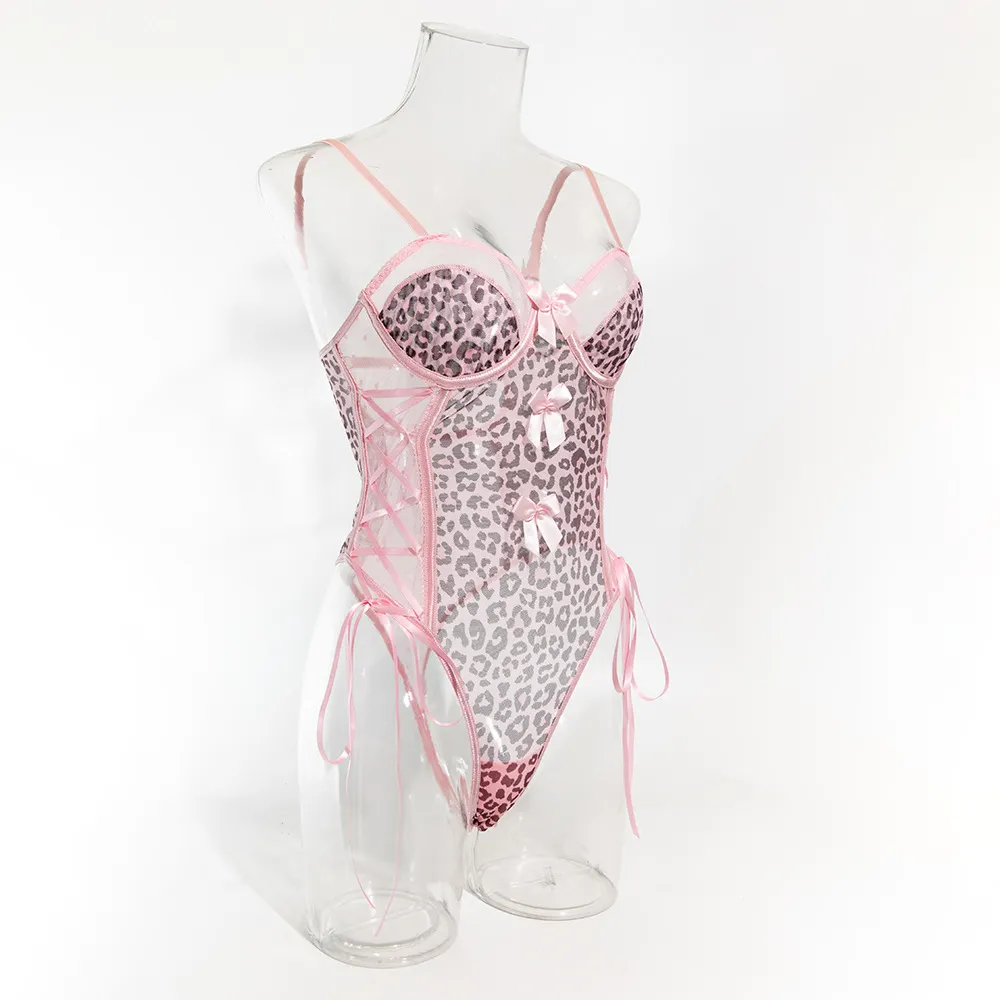 The see-through mesh fabric adds a provocative edge while maintaining elegance, making it perfect for special occasions, nightlife, or intimate moments. The combination of leopard print and polka dots offers a unique contrast that’s both trendy and timeless.