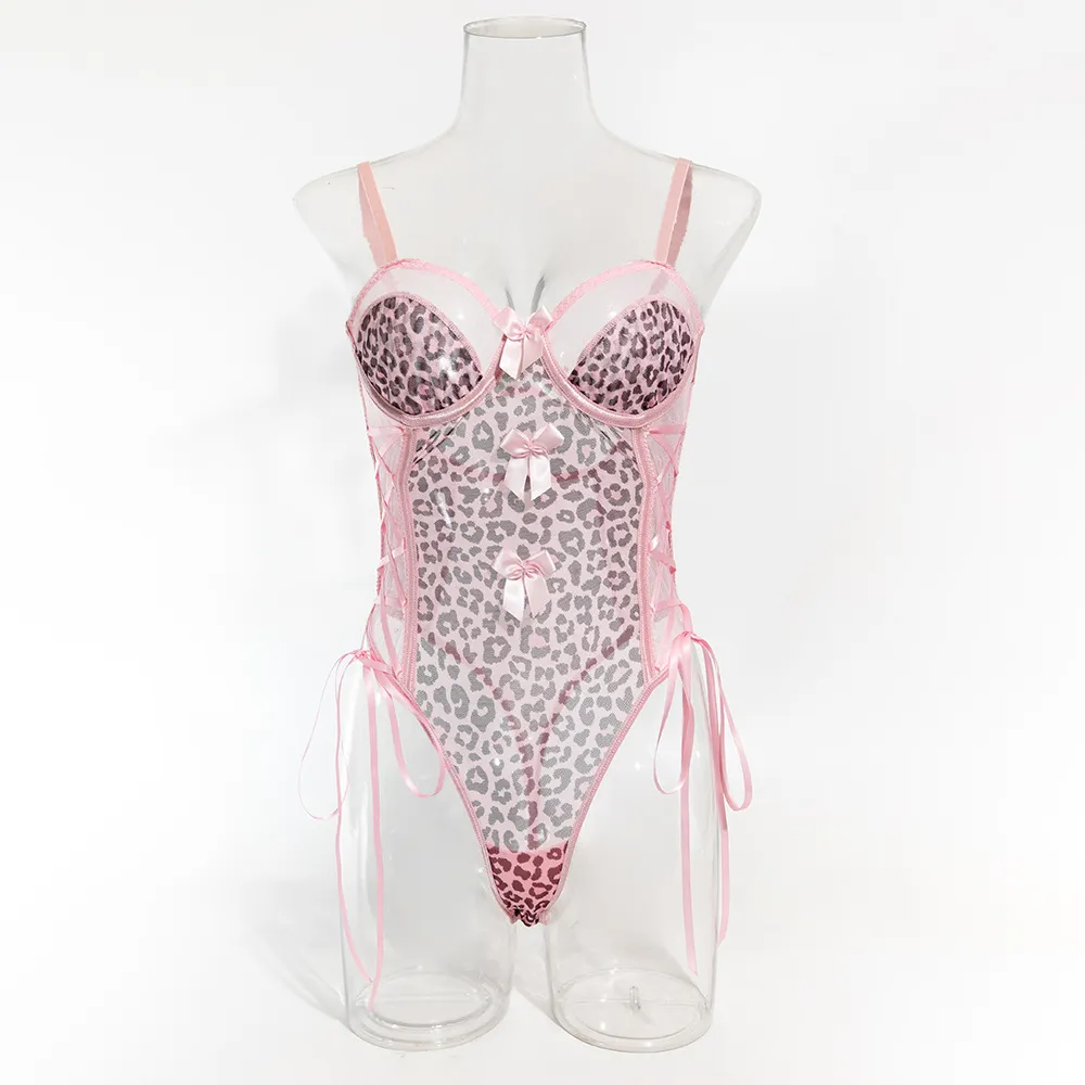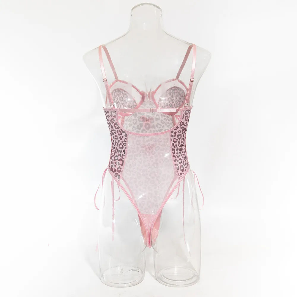 Leopard Print Polka Dot See-through Backless Bodysuit