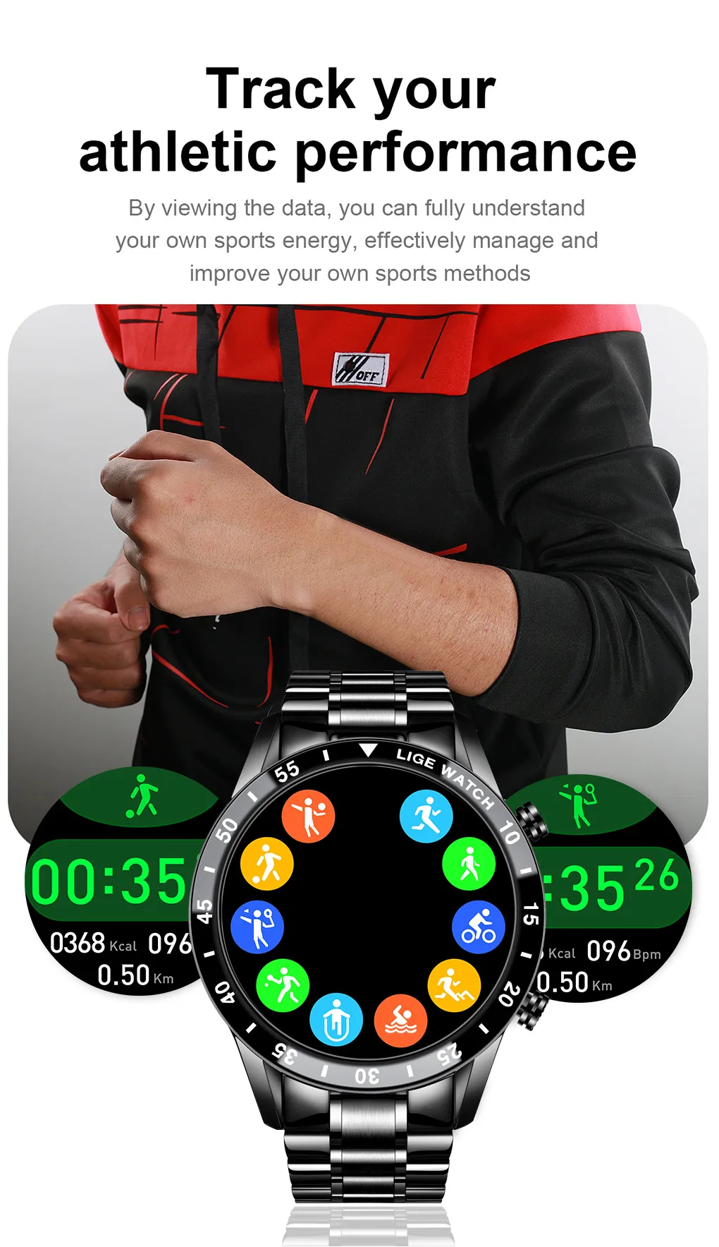 Experience the latest in wearable technology with Lige's New Smart Watch, an upgraded smart wearable device designed for those who value both style and functionality. This smartwatch combines a sleek, modern design with advanced features that cater to your daily activities and health monitoring needs. Whether you’re at the gym, in the office, or out for a casual outing, this versatile watch seamlessly complements your lifestyle while providing essential information at your fingertips.The Lige Smart Watch comes equipped with a vibrant touch display, allowing you to easily navigate through various apps and notifications. Track your health with features such as heart rate monitoring, sleep tracking, and step counting. With multiple sports modes, you can monitor your performance in different activities like running, cycling, and more. The watch also includes sedentary reminders to encourage you to stay active throughout the day, promoting a healthier lifestyle.Connectivity is a breeze with the Lige's New Smart Watch, as it syncs effortlessly with your smartphone, providing real-time notifications for calls, messages, and apps directly on your wrist. Its long-lasting battery ensures that you can go days without recharging, making it perfect for those on the go. With its stylish design and robust functionality, Lige's smart wearable watch is an essential accessory for anyone looking to enhance their daily routine and achieve their fitness goals.