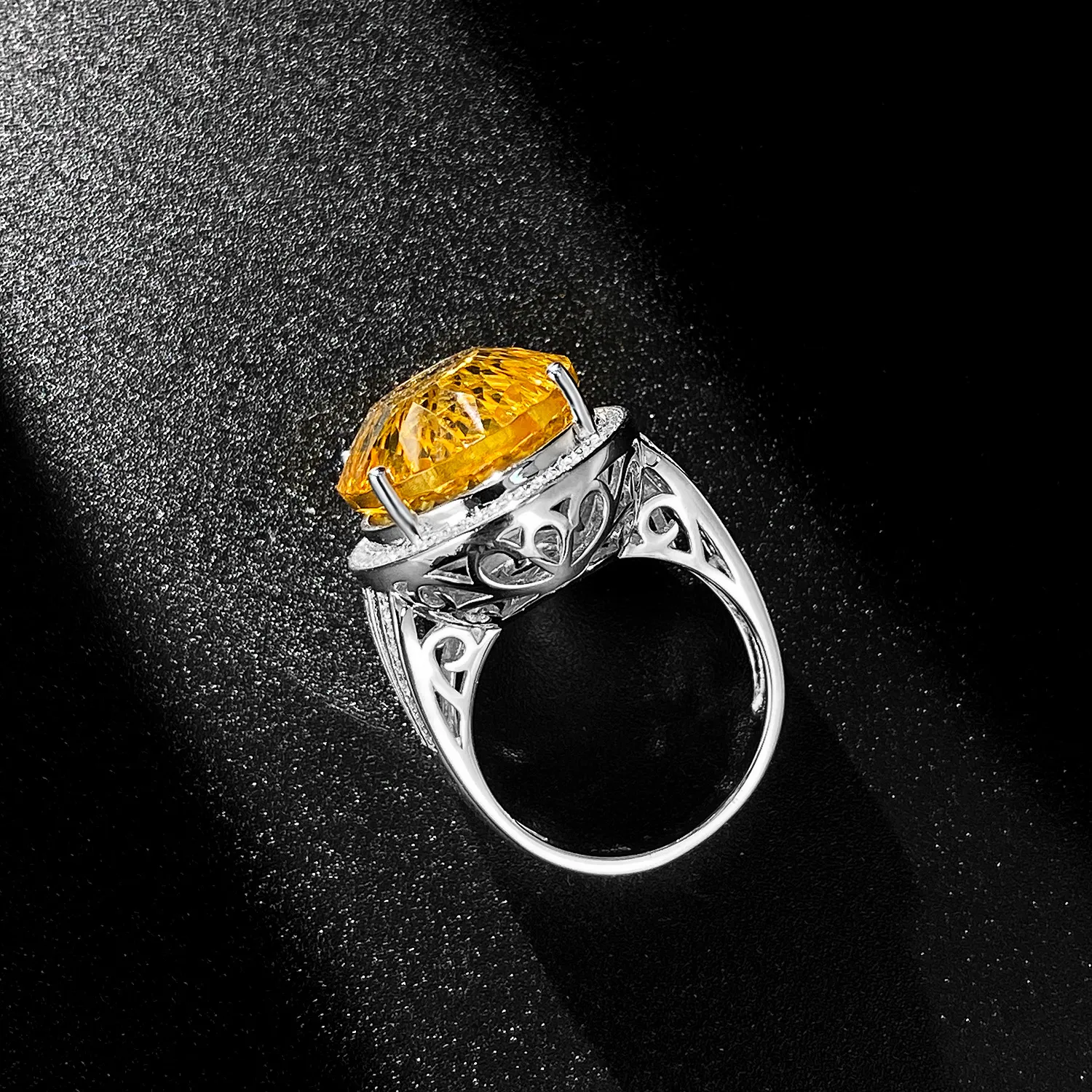Light And Extravagant Wind Jewelry Large Denier Natural Citrine Ring S925 Silver Set Crystal