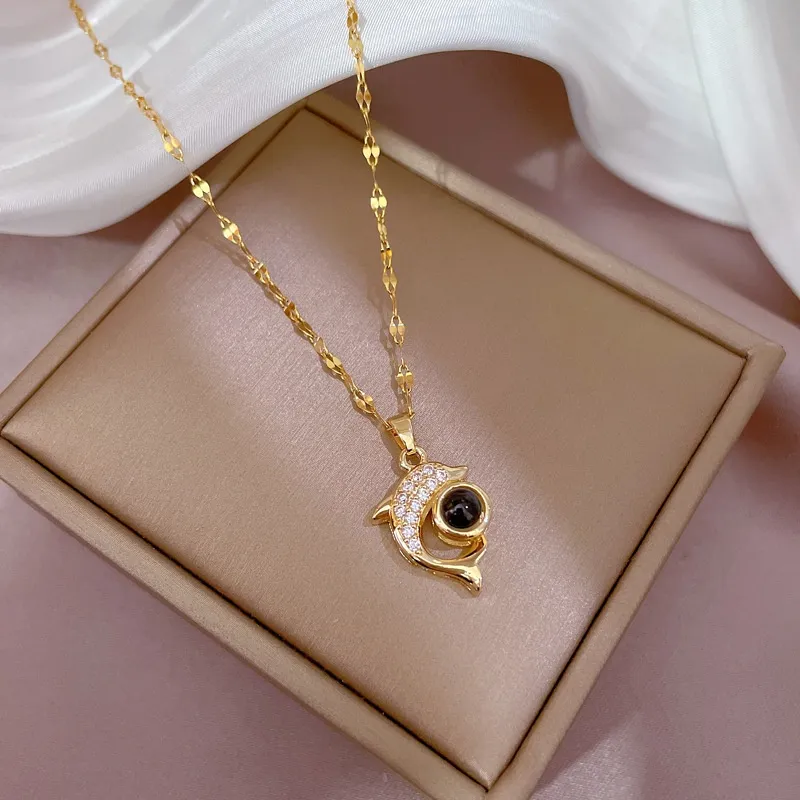 Light Luxury Dolphin Projection Stone Necklace