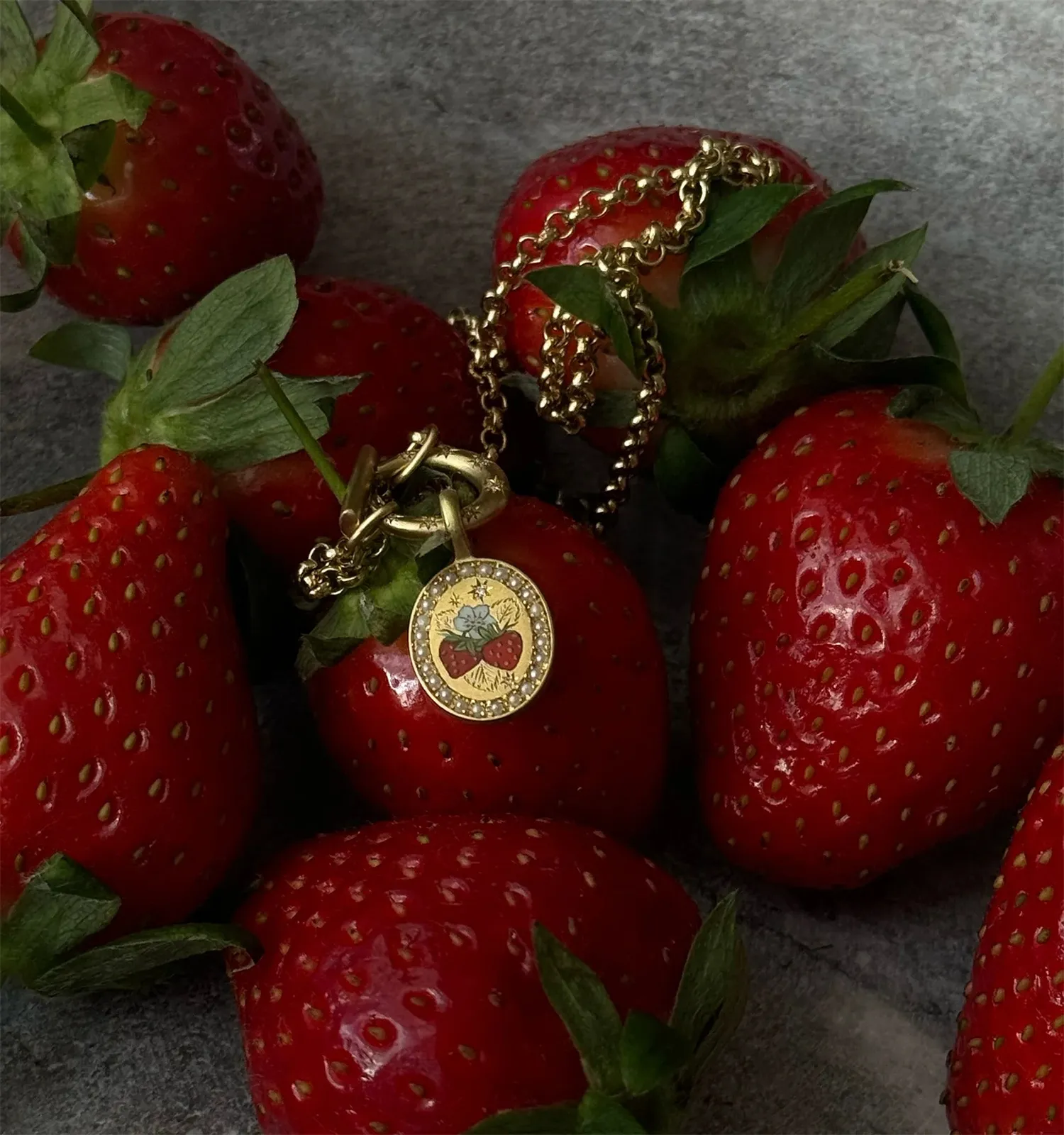 - Playful Design: The strawberry and pearl combination adds a fun, fresh twist to a classic design, making it unique and eye-catching.